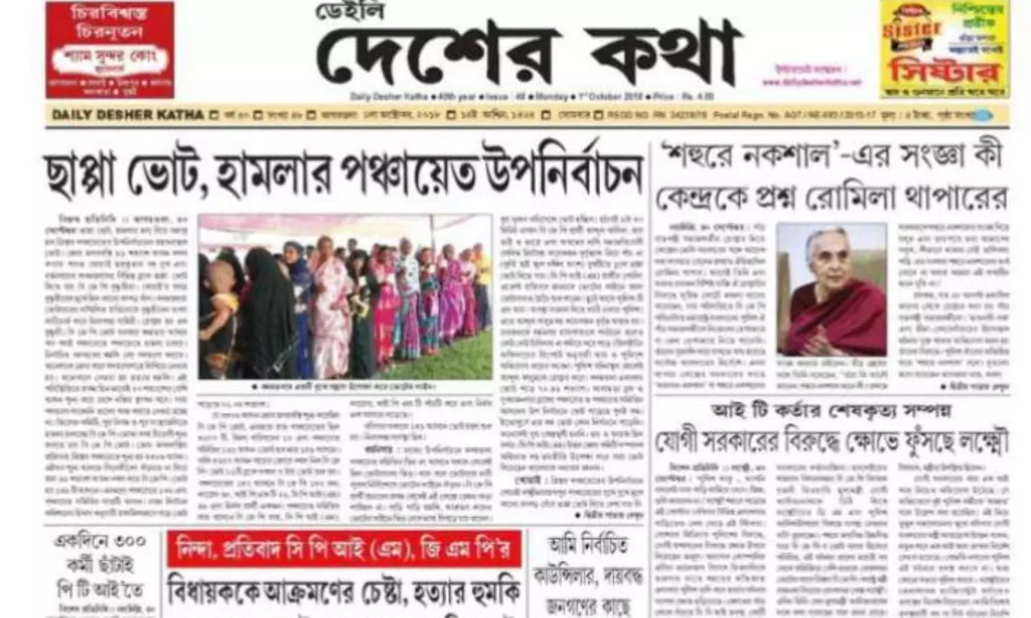 സി.പി.എമ്മിന്റെ ത്രിപുരയിലെ മുഖപത്രം ഡെയ്ലി ദെശെർ കഥയുടെ രജിസ്ട്രേഷൻ റദ്ദാക്കി. രജിസ്ട്രാർ ഓഫ് ന്യൂസ് പേപ്പേഴ്സ് ഫോർ ഇന്ത്യയാണ് ലൈസന്സ് റദ്ദാക്കിയത്. ഇന്നലെ പത്രം പ്രസിദ്ധീകരിക്കാനായില്ല.