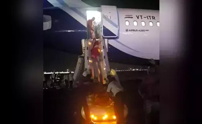കൊൽക്കത്ത വിമാനത്താവളത്തിലെ റൺവേയിലേക്ക് യാത്രക്കാരെ അടിയന്തര വാതിൽ വഴി ഇറക്കുകയായിരുന്നു. ജയ്പൂരിൽ നിന്നായിരുന്നു വിമാനം നേരത്തെ പുറപ്പെട്ടിരുന്നത്.