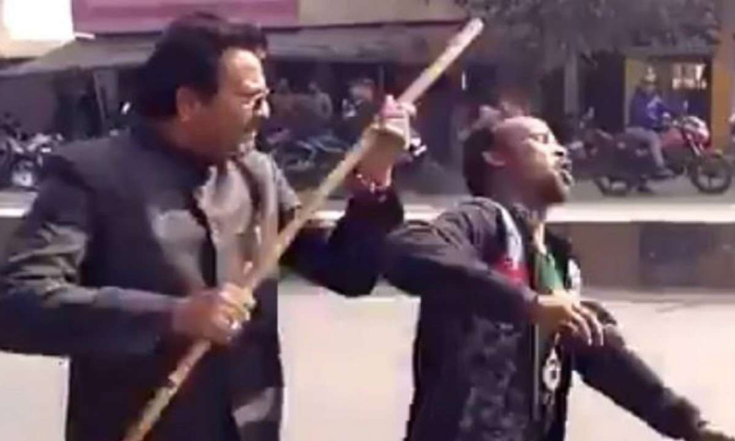 ബി.ജെ.പി നേതാവായ മുഹമ്മദ് മിയാന് വലിയ വടി കൊണ്ട് ആളെ മര്ദിക്കുന്നതാണ് വീഡിയോയിലുള്ളത്. സമാജ്വാദി പാര്ട്ടി നേതാവ് അഖിലേഷ് യാദവിന് വോട്ട് ചെയ്യുമെന്ന് ഭിന്നശേഷിക്കാരനായ അദ്ദേഹം പറഞ്ഞതാണ് ബി.ജെ.പിക്കാരനെ പ്രകോപിപിച്ചത്. പ്രധാനമന്ത്രി നരേന്ദ്ര മോദിയെയും യു.പി മുഖ്യമന്ത്രി യോഗി ആദിത്യനാഥിനെയും വിമര്ശിച്ചതിനാണ് മര്ദനമേറ്റതെന്നാണ് ടൈംസ് ഓഫ് ഇന്ത്യ റിപ്പോര്ട്ട് ചെയ്യുന്നത്. ബി.ജെ.പി നേതാവായ മുഹമ്മദ് മിയാന് മുന്പ് അംറോഹ ജില്ലയിലെ ഉജ്ജാരിയിലെ മുന്സിപ്പില് ചെയര്പേര്സണ് സ്ഥാനത്തേക്ക് മല്സരിച്ച് പരാജയപ്പെട്ടിട്ടുണ്ട്.