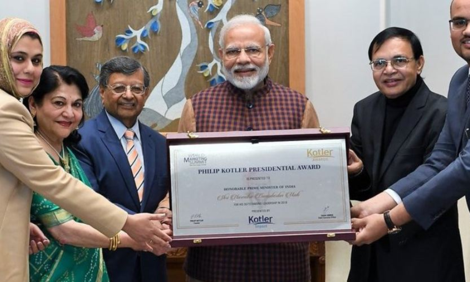 വേള്ഡ് മാര്ക്കറ്റിങ് സമ്മിറ്റ് ഇന്ത്യയാണ് (ഡബ്ല്യു.എം.എസ്) ആദ്യ ഫിലിപ് കോട്ലര് പ്രസിഡന്ഷ്യല് അവാര്ഡ് മോദിക്ക് സമ്മാനിച്ചത്. പരസ്യ, മാര്ക്കറ്റിങ് രംഗത്തെ മികവിനാണ് ഇതുവരെ പുരസ്കാരം നല്കിയിരുന്നത്. വേള്ഡ് മാര്ക്കറ്റിങ് സമ്മിറ്റ് ഗ്രൂപ്പ് സ്ഥാപകന് ഫിലിപ് കോട്ലറിന്റെ പേരിലാണ് പുരസ്കാരം അറിയപ്പെടുന്നത്. എന്നാല് പുതിയ ഫിലിപ് കോട്ലര് പ്രസിഡന്ഷ്യല് പുരസ്കാരത്തെ കുറിച്ച് കമ്പനിയുടെ വെബ്സൈറ്റില് ഒരു പരാമര്ശവുമില്ല. പുരസ്കാരം നല്കിയവരെ കുറിച്ചോ ജൂറിയെ കുറിച്ചോ കേന്ദ്രസര്ക്കാര് പുറത്തിറക്കിയ വാര്ത്താകുറിപ്പിലും കൃത്യമായി പരാമര്ശിച്ചിട്ടില്ല.