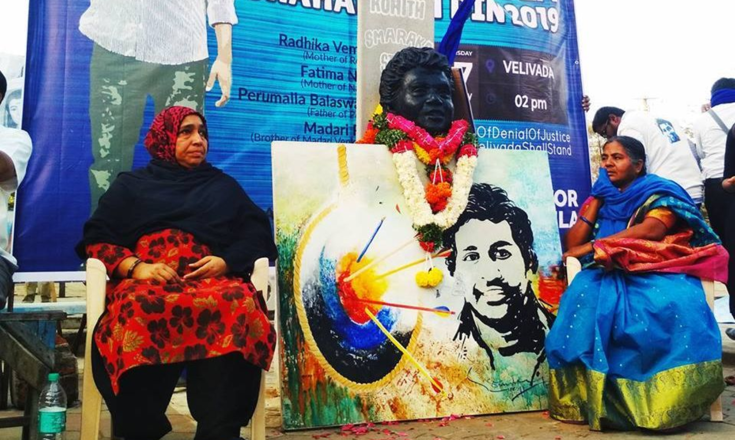 മൂന്ന് വർഷം മുമ്പ് 2016 ജനുവരി 17നാണ് ജാതീയ പീഡനത്തിനൊടുവിൽ രോഹിത് വെമുല ആത്മഹത്യ ചെയ്യുന്നത്. വ്യവസ്ഥാപിത കൊലപാതകത്തിന് ശേഷം രോഹിത്തിന് നീതി തേടിയുള്ള സമരത്തെ വൻ പൊലീസ് സന്നാഹങ്ങളെ ഉപയോഗിച്ചായിരുന്നു അധികാരികളും പൊലീസും നേരിട്ടിരുന്നത്. രാജ്യത്തുടനീളം ജാതി വിരുദ്ധ പ്രക്ഷോഭത്തെ നയിച്ചുകൊണ്ടിരിക്കുന്നത് ഈ ഉമ്മമാരാണെന്നും നമ്മള് എല്ലാ ജാതിമേല്കോയ്മകളെയും അതിജീവിക്കുമെന്നും വ്യത്യസ്ഥ രാഷ്ട്രീയ പാര്ട്ടികളെ പ്രതിനിധീകരിച്ച് വിദ്യാര്ത്ഥികള് പറഞ്ഞു.
