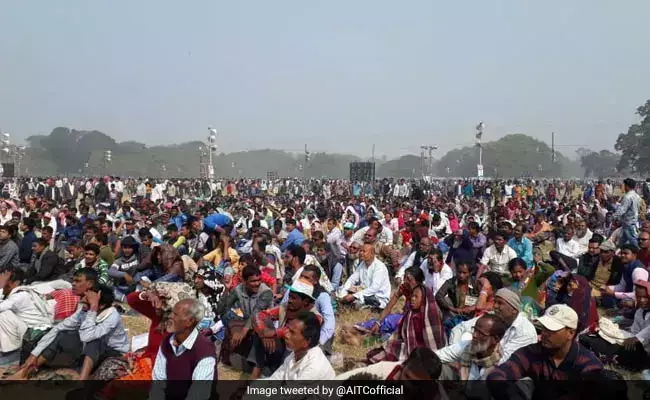 തൃണമൂല് കോണ്ഗ്രസ് സംഘടിപ്പിച്ച മഹാറാലിയില് ഇരുപതിലേറെ പ്രതിപക്ഷ കക്ഷികളുടെ നേതാക്കളും ബി.ജെ.പി വിമതരും പങ്കെടുത്തു.