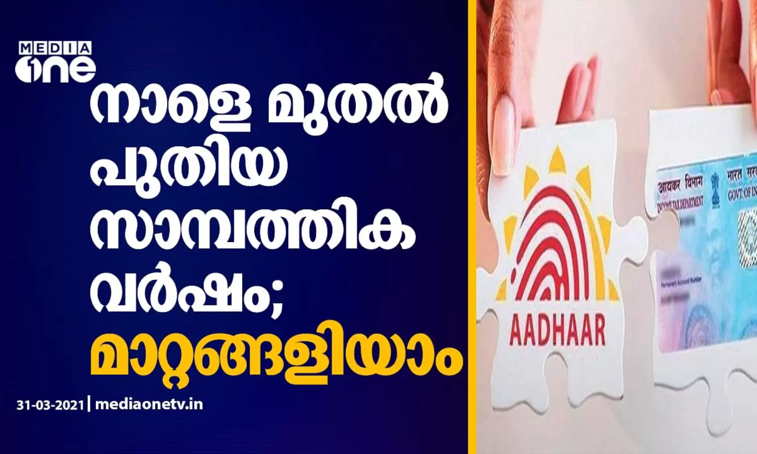2020-21 സാമ്പത്തിക വർഷത്തിന്റെ അവസാനദിനമായ ഇന്ന് സാമ്പത്തിക സംബന്ധമായ പല നടപടികൾക്കുള്ള അവസാന അവസരമാണ്. മാത്രമല്ല നാളെ മുതൽ വലിയ മാറ്റങ്ങളാണ് സാമ്പത്തിക മേഖലയെ കാത്തിരിക്കുന്നത്.