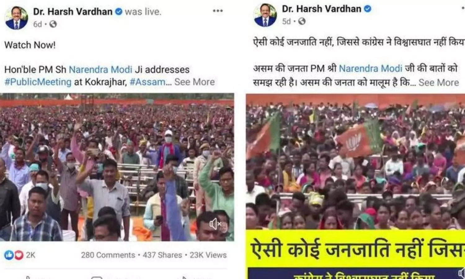ബി.ജെ.പിയുടെ ജനനിബിഡമായ വേദികളുടെ ചിത്രങ്ങൾ മന്ത്രി ഹർഷ് വർധൻ തന്നെ പലപ്പോഴായി പങ്കുവെച്ചിരുന്നു.