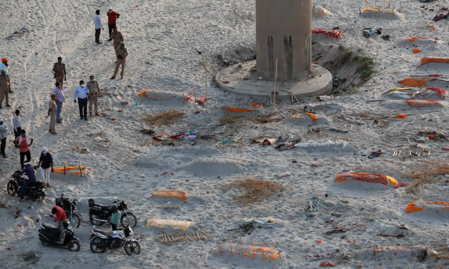 പ്രയാഗ്രാജില് ഗംഗാതീരത്ത് മൃതദേഹങ്ങള് മണലില് കുഴിച്ചിട്ട നിലയില്