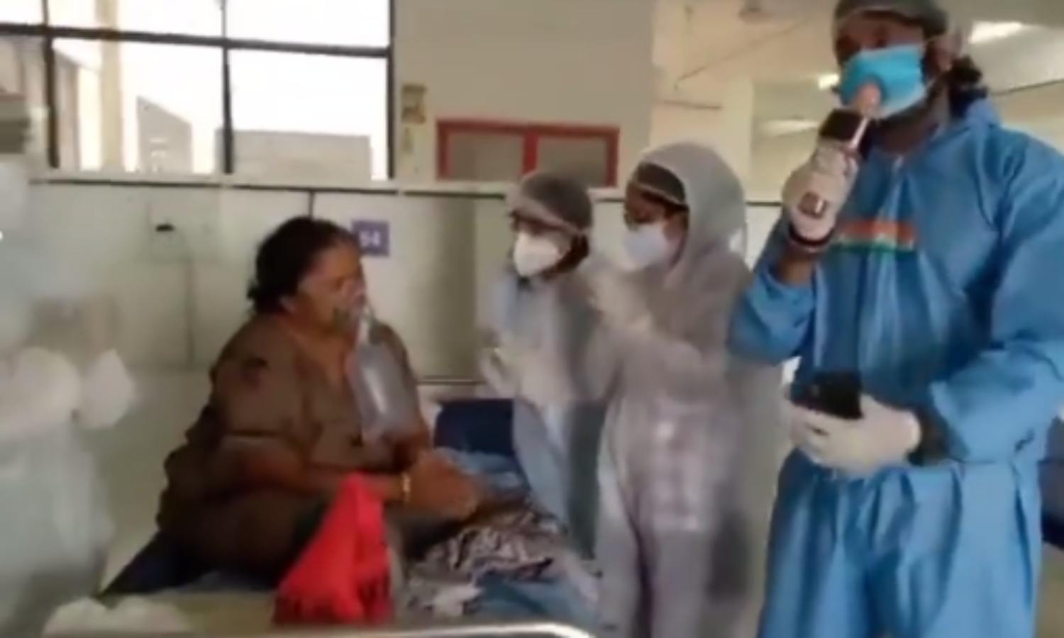 കോവിഡ് വ്യാപനം ഭീതി പരത്തുമ്പോള് തീര്ത്തും നിരാശാജനകമായ വാര്ത്തകളാണ് രാജ്യത്തിന്റെ വിവിധ കോണുകളില് നിന്ന് വരുന്നത്. എന്നാല്, ഇതിനിടയിലും പ്രതീക്ഷയുടെ കണിക വറ്റാത്ത ചില വാര്ത്തകളും ദൃശ്യങ്ങളും നമ്മെത്തേടിയെത്താറുണ്ട്. അത്തരത്തിൽ ഗുജറാത്തിലെ ആശുപത്രിയിൽനിന്ന് പുറത്തുവന്ന ഒരു വിഡിയോ ഇപ്പോള് തരംഗമാവുകയാണ്.