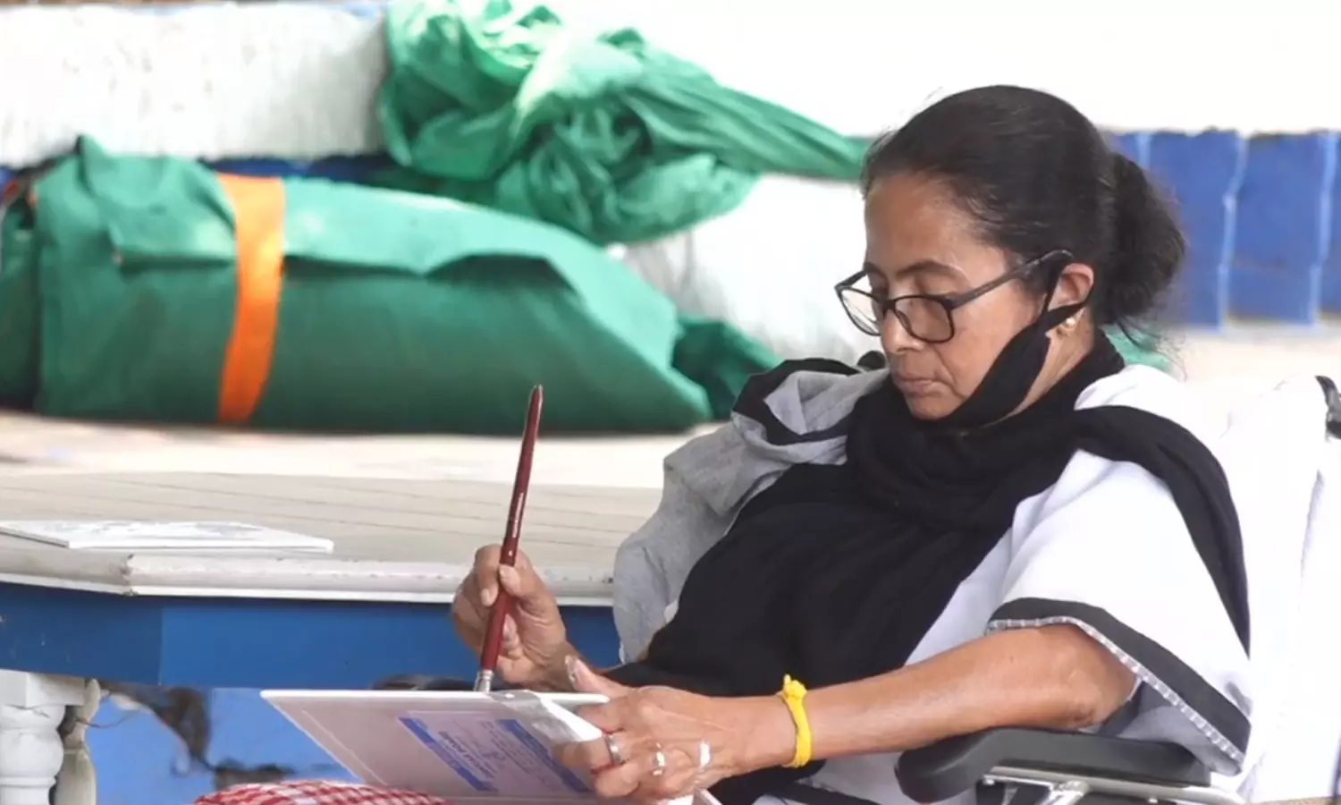 ധര്ണയ്ക്കിടയില് മമത പെയിന്റിങില് ഏര്പ്പെടുകയായിരുന്നു. പ്രതിഷേധ സ്ഥലത്ത് മറ്റ് തൃണമൂല് നേതാക്കളുണ്ടായിരുന്നില്ല. മായോ റോഡ് വെന്യുവിന് സമീപത്തെ ഗാന്ധി പ്രതിമയ്ക്ക് സമീപം വീല്ചെയറില് ഇരുന്നുകൊണ്ടായിരുന്നു മമതയുടെ ഒറ്റയാള് പ്രതിഷേധം.