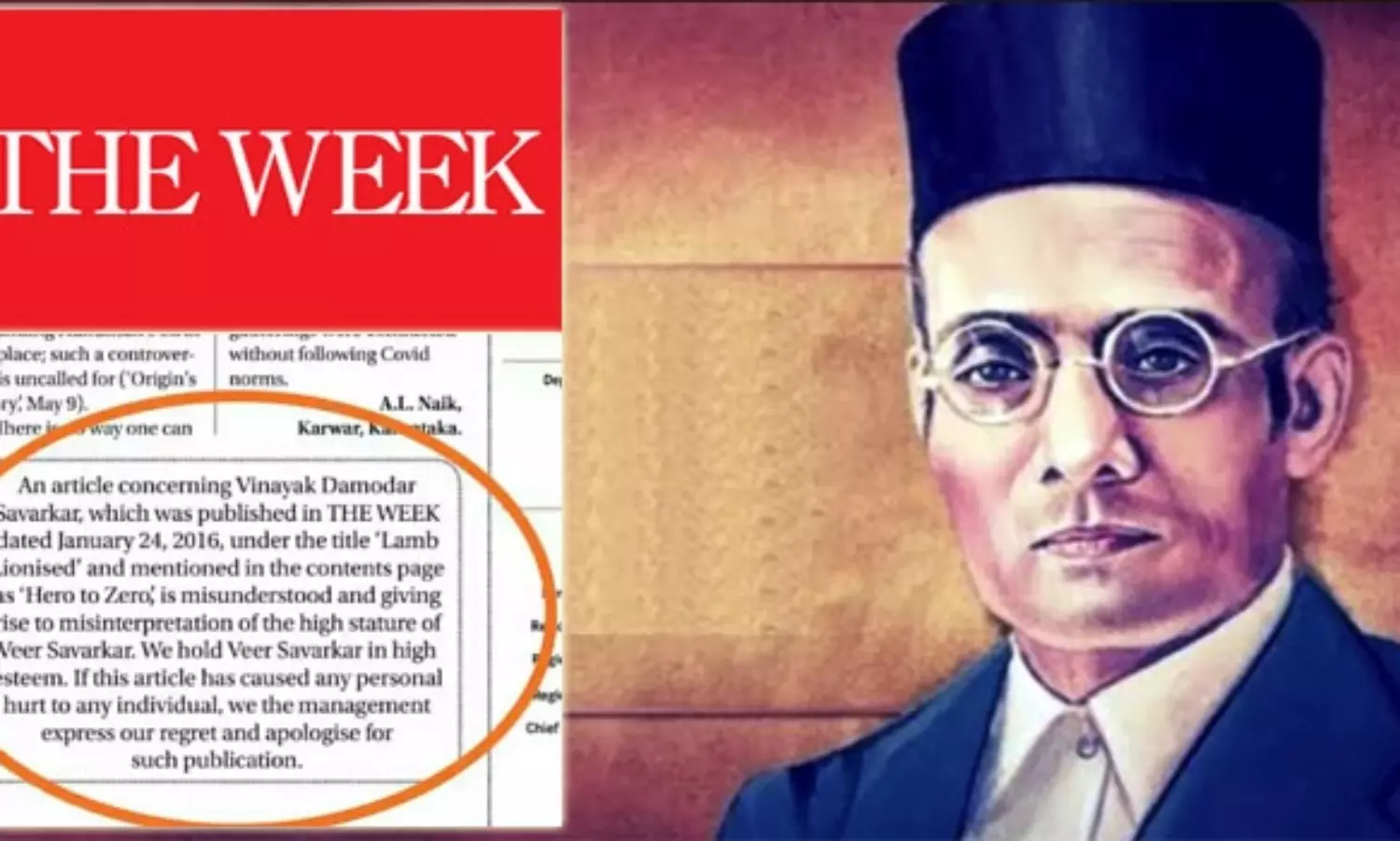 സവര്ക്കറെ കുറിച്ച് 2016ല് പ്രസിദ്ധീകരിച്ച ലേഖനത്തിന് മാപ്പ് പറഞ്ഞ് ദ വീക്ക്; മാപ്പ് പറയില്ലെന്ന് ലേഖകന്