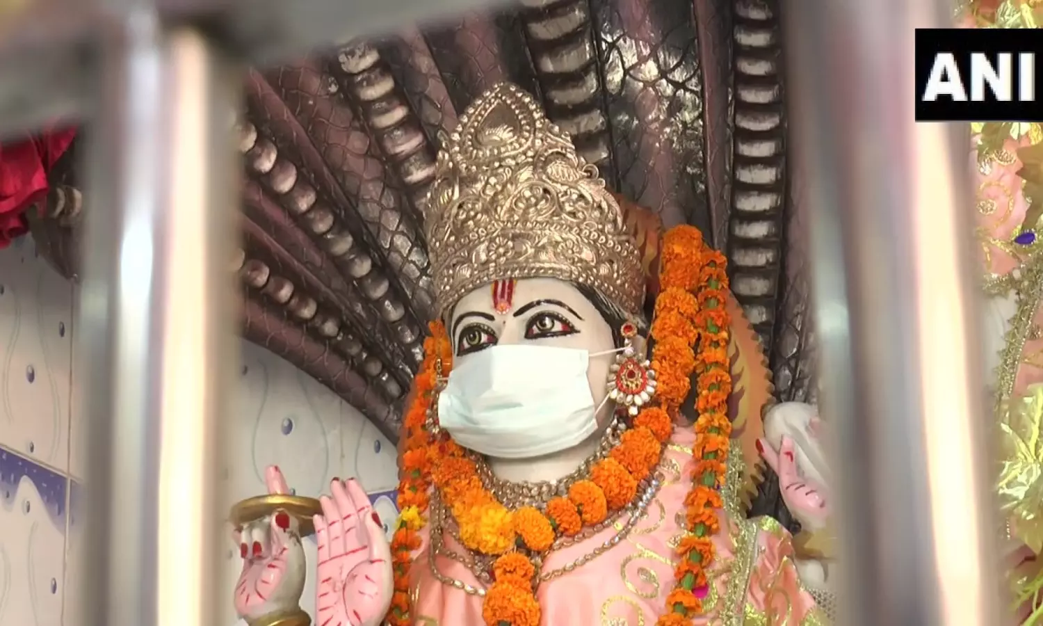 കോവിഡ് രണ്ടാം തരംഗം: യു.പിയിൽ ക്ഷേത്രത്തിലെ വിഗ്രഹങ്ങൾക്ക് മാസ്ക് ധരിപ്പിച്ചു
