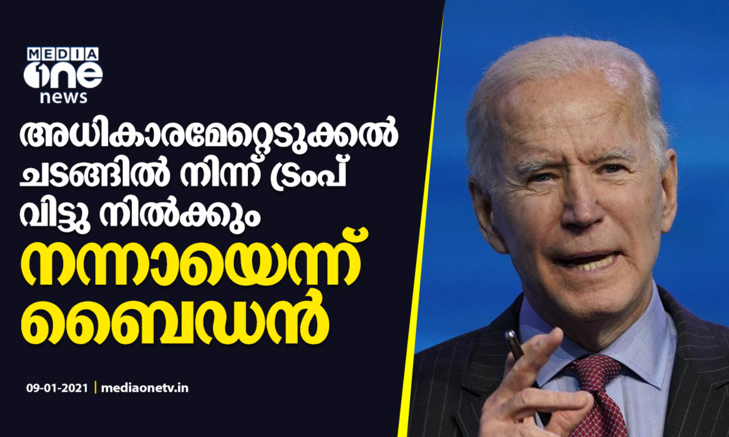 അധികാരമേല്ക്കുന്ന ചടങ്ങില് നിന്ന് ട്രംപ് വിട്ടു നില്ക്കും; നന്നായെന്ന് ബൈഡന്