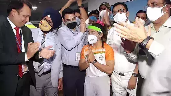 മെഡൽ നേട്ടത്തിന് ശേഷം രാജ്യത്തെത്തിയ മീരാഭായ് ചാനുവിനെ സ്പോർട്സ് അതോറിറ്റി ഓഫ് ഇന്ത്യയുടെയും കായിക മന്ത്രാലയത്തിലെയും ഉദ്യോഗസ്ഥർ ചേർന്നാണ് സ്വീകരിച്ചത്. വിമാനത്താവളത്തിന് പുറത്തും നിരവധി ആരാധകർ ആവേശത്തോടെ ചനുവിനെ കാണാനായെത്തിയിരുന്നു. കോവിഡ് ടെസ്റ്റിന് ശേഷമാണ് മീരാഭായ് ചനു പുറത്തിറങ്ങിയത്.