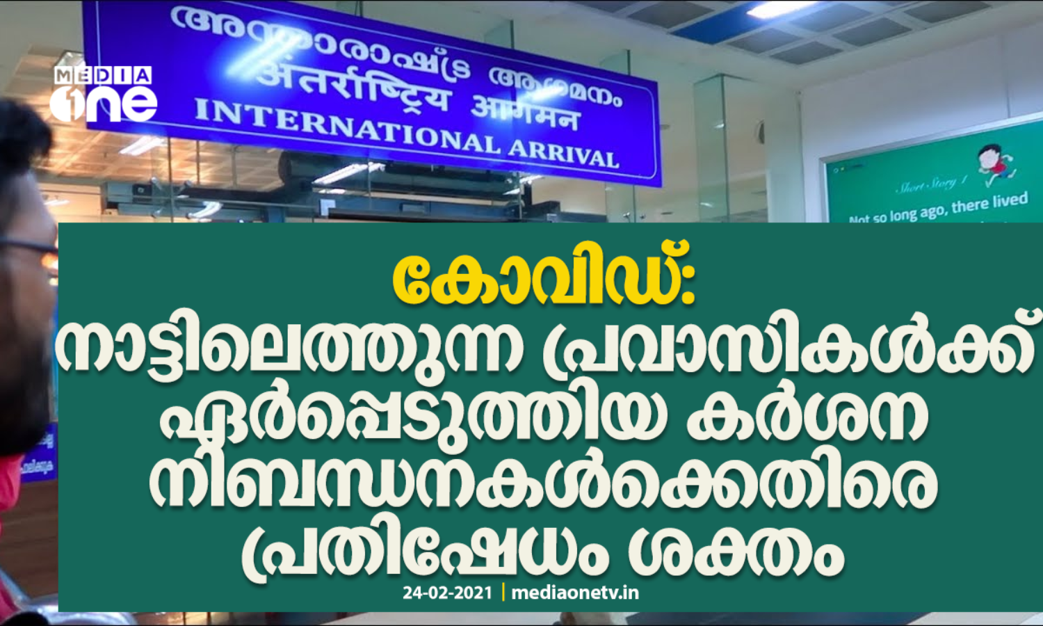 കോവിഡ്: നാട്ടിലെത്തുന്ന പ്രവാസികൾക്ക് ഏർപ്പെടുത്തിയ കർശന നിബന്ധനകൾക്കെതിരെ പ്രതിഷേധം ശക്തമാകുന്നു.
