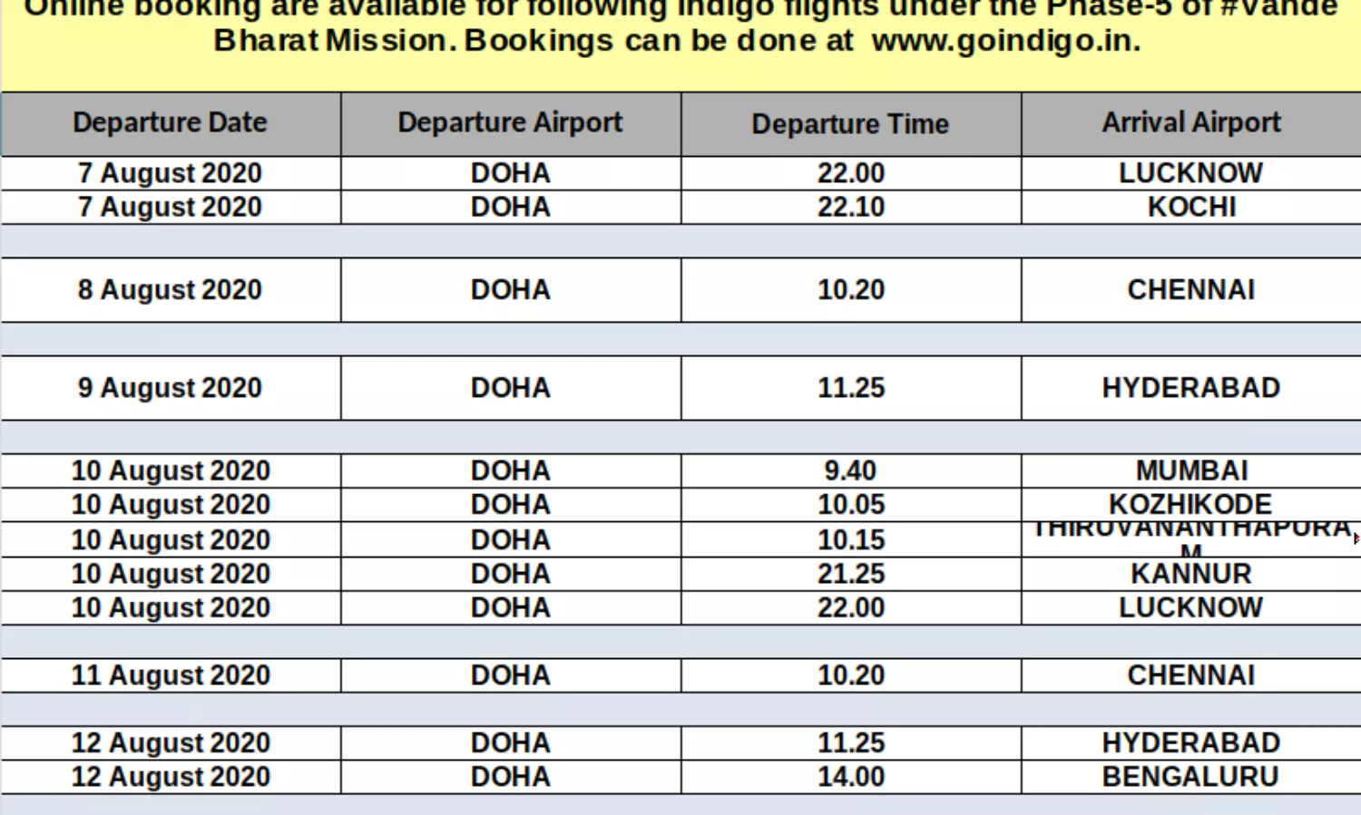 എയര്ഇന്ത്യ നടത്തുന്ന ഷെഡ്യൂളുകള്ക്ക് പുറമെയാണ് ഇന്ഡിഗോ സര്വീസുകള്. ഈ ഘട്ടത്തില് കേരളത്തിലേക്ക് ഇനിയുള്ള എയര്ഇന്ത്യ സര്വീസുകള് താഴെ ചേര്ക്കുന്നു.