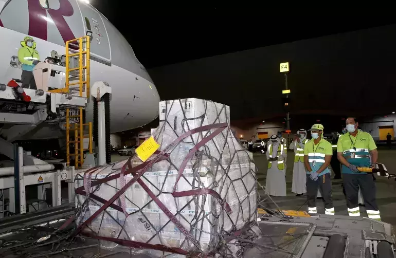 لقطات من عملية وصول الشحنة الأولى من لقاح كوفيد-١٩ إلى دولة قطر
