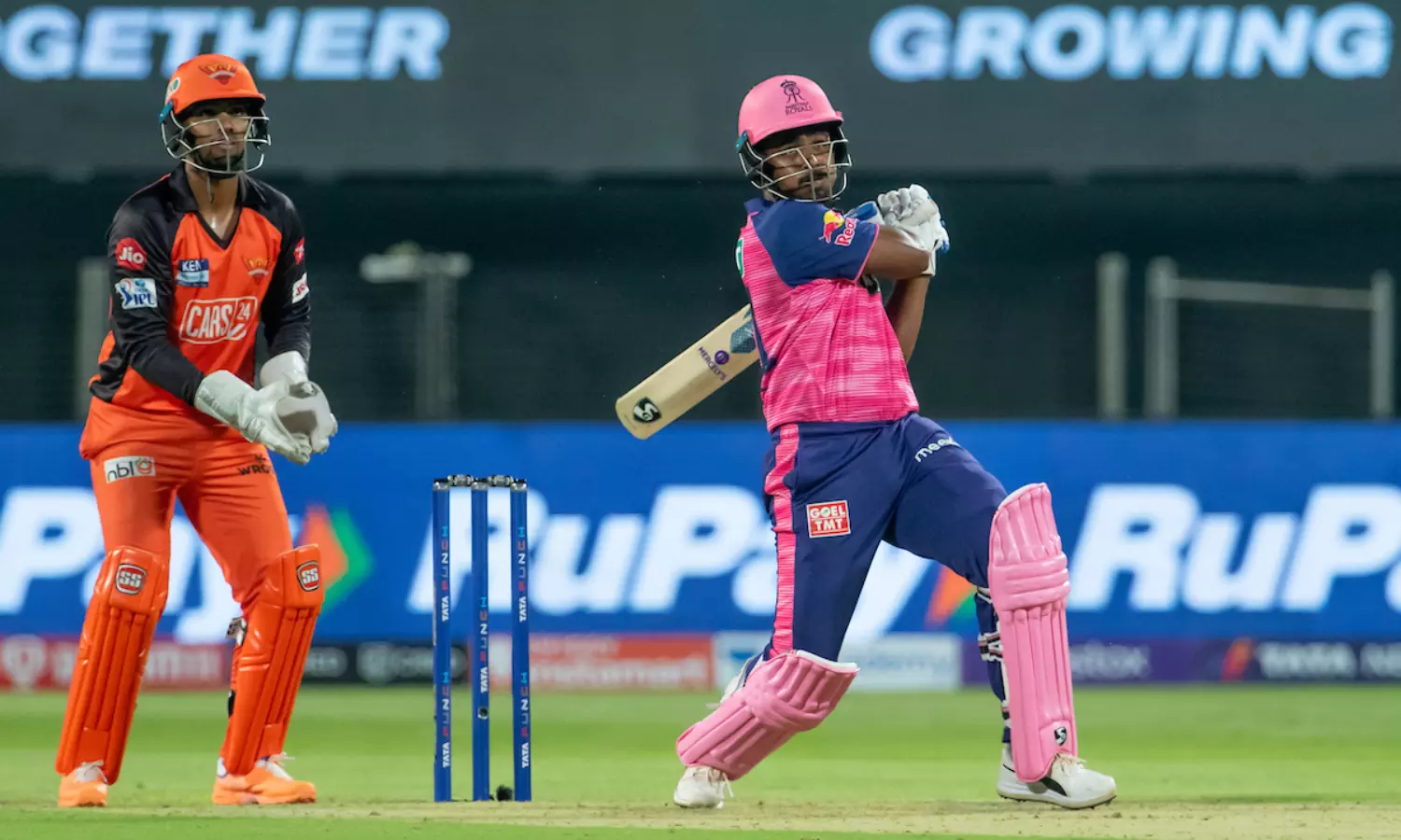 നേരത്തേ രാജസ്ഥാന് ഇന്നിങ്സ് ഓപ്പണ് ചെയ്ത ജോസ് ബട്ലറും ജെയ്സ്വാളും ചേര്ന്ന് ടീമിന് മികച്ച തുടക്കമാണ് നല്കിയത്. ഓപ്പണിങ് വിക്കറ്റില് ഇരുവരും ചേര്ന്ന് 75 റണ്സിന്റെ പാര്ട്ണര്ഷിപ്പാണ് പടുത്തുയര്ത്തിയത്. നിലയുറപ്പിക്കാന് ശ്രമിക്കുന്നതിനിടെ ജയ്സ്വാളിനെയാണ് രാജസ്ഥാന് ആദ്യം നഷ്ടമായത്. റണ്സെടുത്ത ജയ്സ്വാളിനെ സ്റ്റെഫേര്ഡ് പുറത്താക്കുകയായിരുന്നു. വണ്ഡൌണായെത്തിയ സഞ്ജു ജോസ് ബട്ലറിന് മികച്ച പിന്തുണ നല്കുമെന്ന് തോന്നിച്ച സമയത്ത് ബട്ലറിനെ പുറത്താക്കി ഉമ്രാന് മാലിക്ക് ഹൈദരാബാദിന് ആശ്വാസമേകി. 28 പന്തില് മൂന്ന് ബൌണ്ടറിയും മൂന്ന് സിക്സറുമുള്പ്പടെ 35 റണ്സാണ് ബടലര് നേടിയത്.
