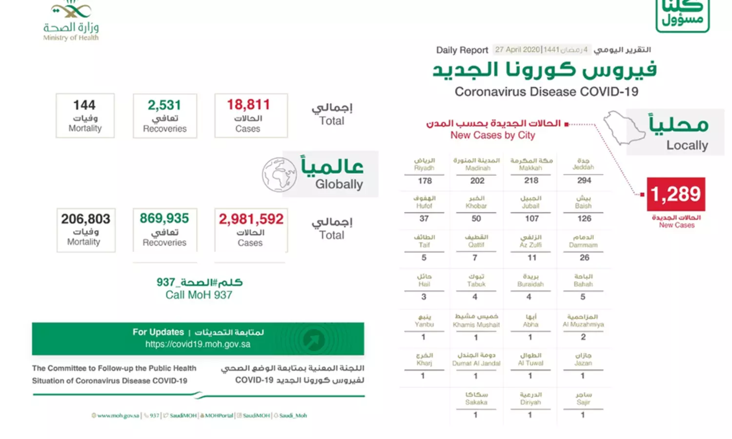 സൗദിയില് ഇന്ന് അഞ്ച് മരണം; കോവിഡ് ബാധിതരുടെ എണ്ണം 18,000 കവിഞ്ഞു