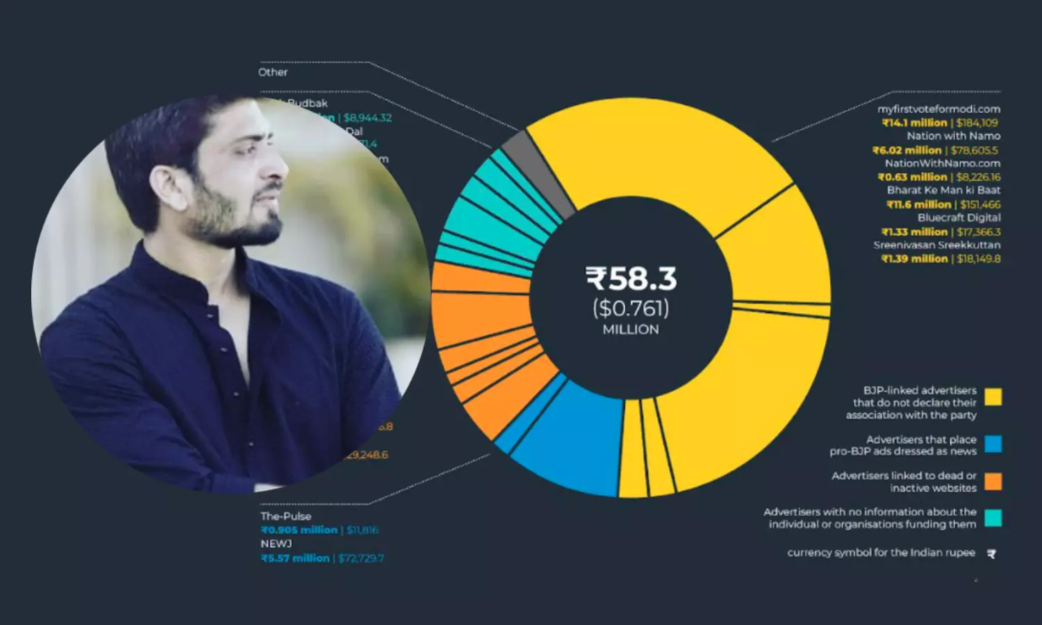 2019-നും 2020-നുമിടയിൽ 5.5 ലക്ഷത്തോളം രാഷ്ട്രീയ പരസ്യങ്ങളാണ് ഫേസ്ബുക്കിൽ വന്നത്. ആഡ് ലിബർട്ടി എ.പി.ഐ ഉപയോഗിച്ച് ഇതിന്റെ വിവരങ്ങൾ എടുത്തു. ഇതിൽ, ആരെന്ന് വെളിപ്പെടുത്താതെ നിരവധി പേർ ബി.ജെ.പിക്കു വേണ്ടി പരസ്യം ചെയ്തിട്ടുണ്ട്. രാജ്യത്തെ ഏറ്റവും വലിയ ടെലികോം സ്ഥാപനമായ റിലയൻസ് ജിയോ ഫണ്ട് ചെയ്യുന്ന ഒരു സ്ഥാപനം ഇതിൽപ്പെടുന്നു.