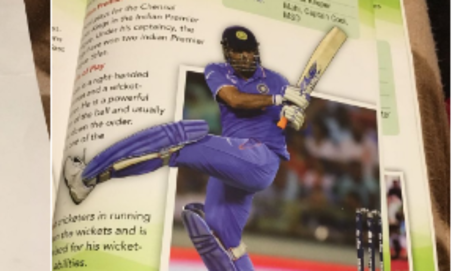 എന്റെ മൂത്ത മകന് ആര്യവീര് വരച്ച ധോണിയുടെ ചിത്രമാണിത്, ഈ ചിത്രത്തിലും ധോണി കൂറ്റനടികളുടെ പിന്നാലെയാണ് എന്ന അടിക്കുറിപ്പോടെയാണ്