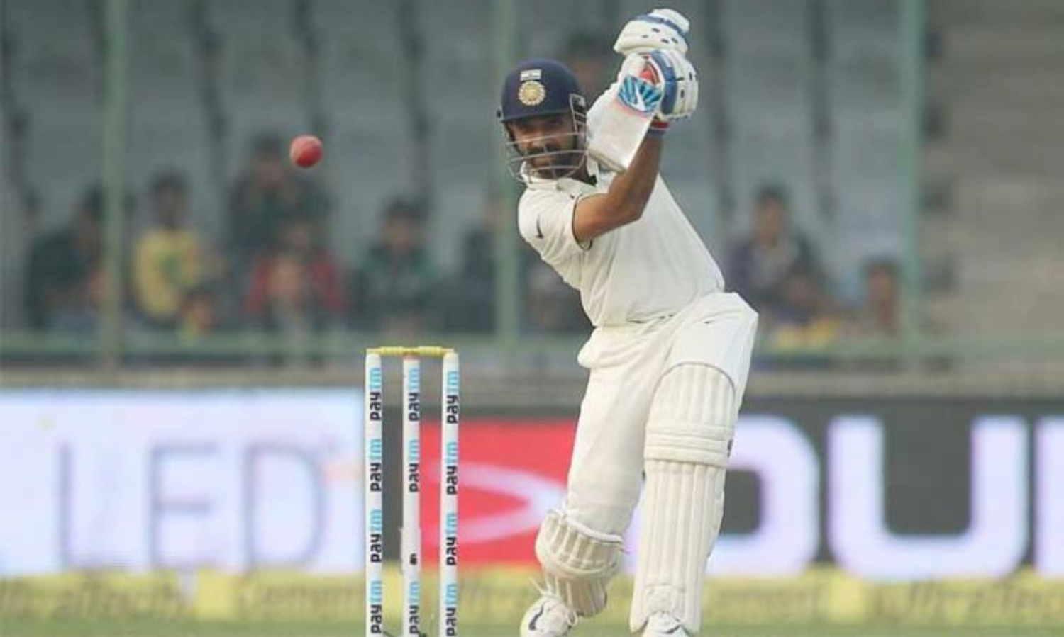 മിഡ് വിക്കറ്റിന് മുകളിലൂടെയാണ് ആദ്യം പന്ത് കാണികളിലേക്ക് പറന്നിറങ്ങിയതെങ്കില് സ്റ്റമ്പില് നിന്ന് അകന്ന് മാറി പോയിന്റ് ബൌണ്ടറിക്ക് മുകളിലൂടെ പന്തടിച്ചകറ്റുന്ന രഹാനെയാണ് പിന്നെ കണ്ടത്.