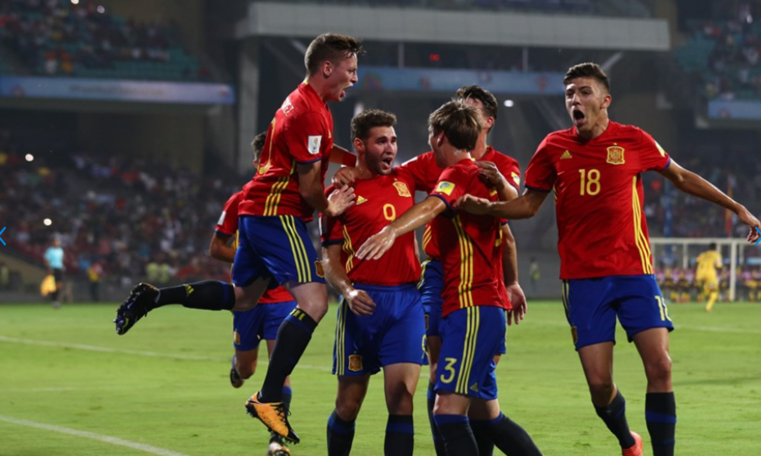 സ്പെയിന് അണ്ടര് 17 ഫുട്ബോള് ലോകകപ്പ് ഫൈനലില്. ആഫ്രിക്കന് ശക്തികളായ മാലിയെ ഒന്നിനെതിരെ മൂന്ന് ഗോളിന് തകര്ത്താണ് സ്പെയിന്റെ ഫൈനല് പ്രവേശം. ആബെല് റൂയിസ് രണ്ട് തവണയും ഫെറാന് ടോറസ് ഒരുതവണയും സ്പെയിനുവേണ്ടി ലക്ഷ്യം കണ്ടപ്പോള് മാലിയുടെ ആശ്വാസഗോള് നേടിയത് ലസാന ഡിയായാണ്.