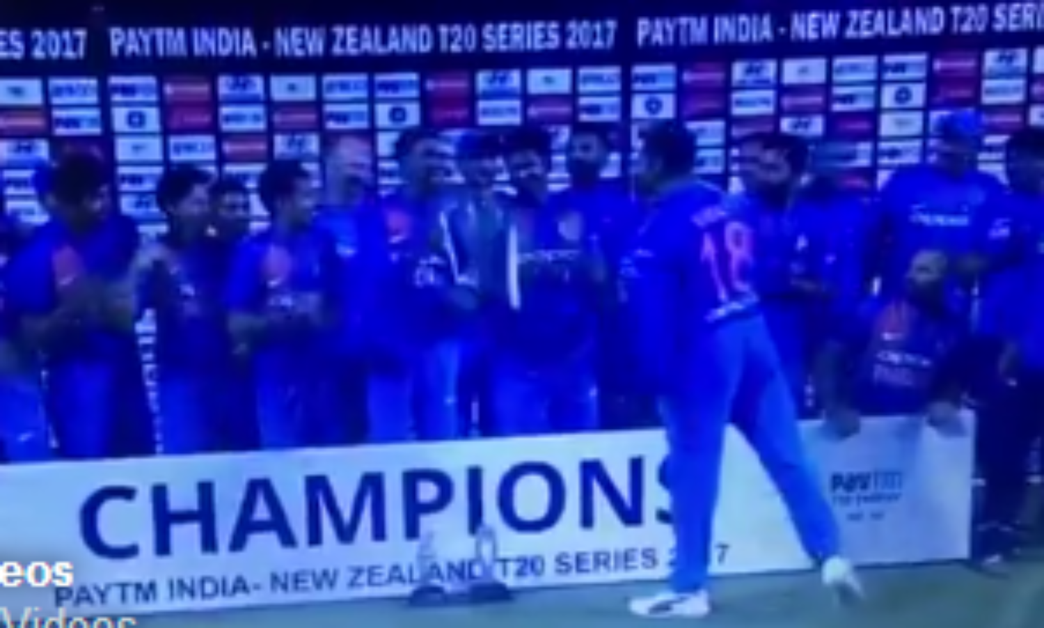 വിജയികള്ക്കുള്ള ട്രോഫി ഏറ്റുവാങ്ങിയ ശേഷം ടീമിലെ പുതുമുഖമായ പേസര് സിറാജിന് കൈമാറിയാണ് ഇന്ത്യന് നായകന് ശ്രദ്ധപിടിച്ചുപറ്റിയത്. ട്രോഫിയുമായി ടീം ഫോട്ടോയ്ക്ക് പോസ് ചെയ്യുന്നതിന് തൊട്ടുമുമ്പായിരുന്നു കൊഹ്ലിയുടെ ഈ തകര്പ്പന്