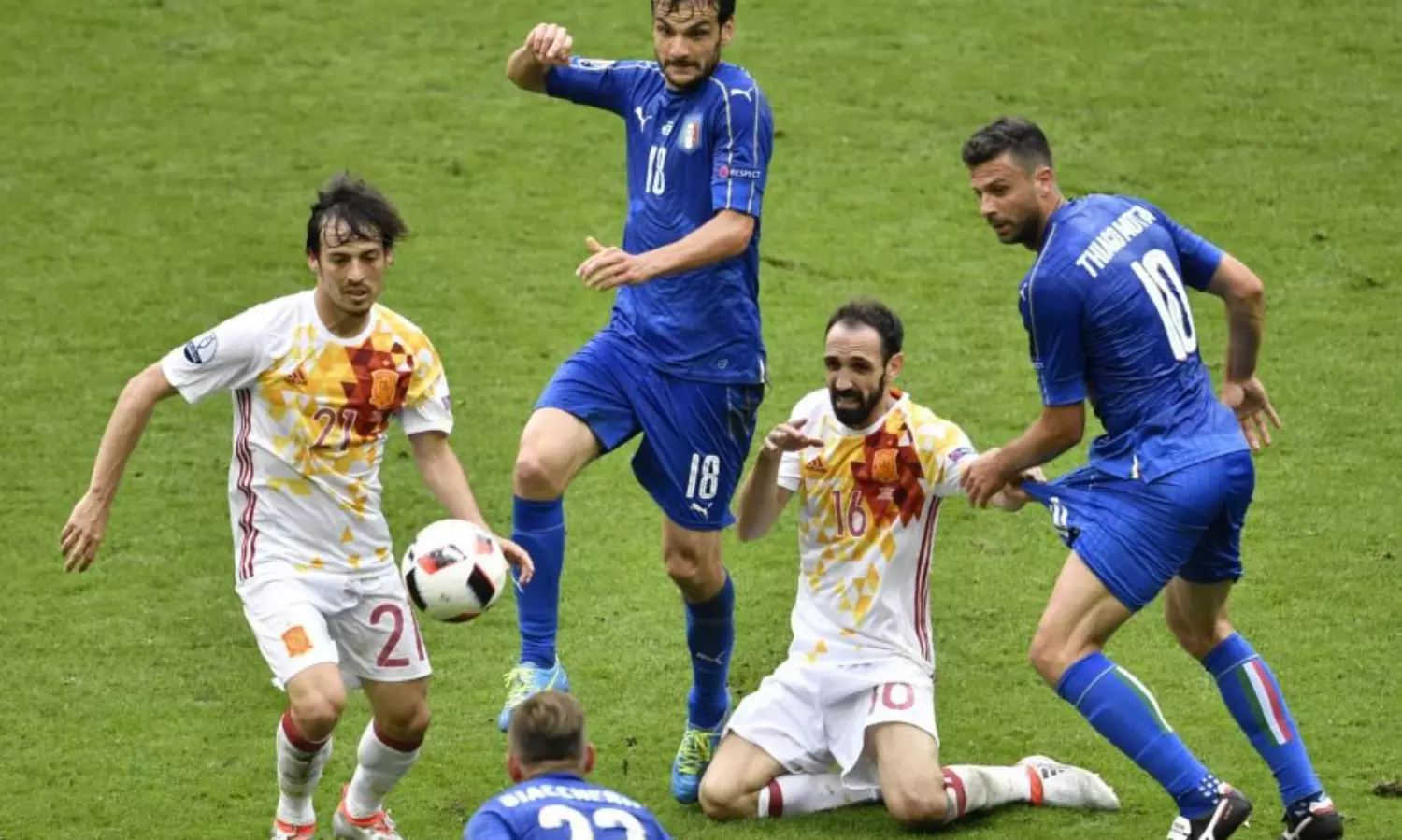 പതിവിനു വിപരീതമായി റഫറിയുടെ വിസിലന് ഒപ്പം എതിര് പ്രതിരോധ തുളച്ചുകയറുന്ന അസൂറിപ്പടയെ ആണ് ഇന്ന് കാണാനായത് , ബര്സാഗിലിയുടെ പാസുമായി ആദ്യപന്തു തന്നെ ഏഡറും, ഡി റോസിയും പെല്ലയും സ്പാനിഷ് പ്രതിരോധനിര കടത്തിയപ്പോള് ഹുവാന് ഫ്രാന് പിക്കെയും റാമോസും കാത്ത സ്പാനിഷ് പിന് നിര അതൊരു ആകസ്മിക മുന്നേറ്ല് ആയിട്ടേ കരുതുവാന് ഇടയുണ്ടായുള്ളു , തൊട്ടടുത്ത മിനിറ്റില് ഇന്ന് സ്പാനിഷ് നിരയില് ഏറ്റവും മികച്ച പ്രകടനം കാഴ്ച വച്ച ഹുവാന് ഫറാന് അധ്വാനിച്ചു എത്തിച്ച പന്തു മൊറാറ്റ ഫാബ്രെഗാസ് സഖ്യം നേരെ നൊലീറ്റോയുടെ തലയില് എത്തിച്ചു ആറാം മിനിറ്റില് തന്നെ ലീഡ് നേടാമായിരുന്ന ആ അപൂര്വ അവസര് നൊലീറ്റോയുടെ ഹെഡ്ഡര് തട്ടി അകറ്റി ബഫണ് താന് ഇന്ന് അജയന് ആണെന്ന് തെളിയിച്ചു.