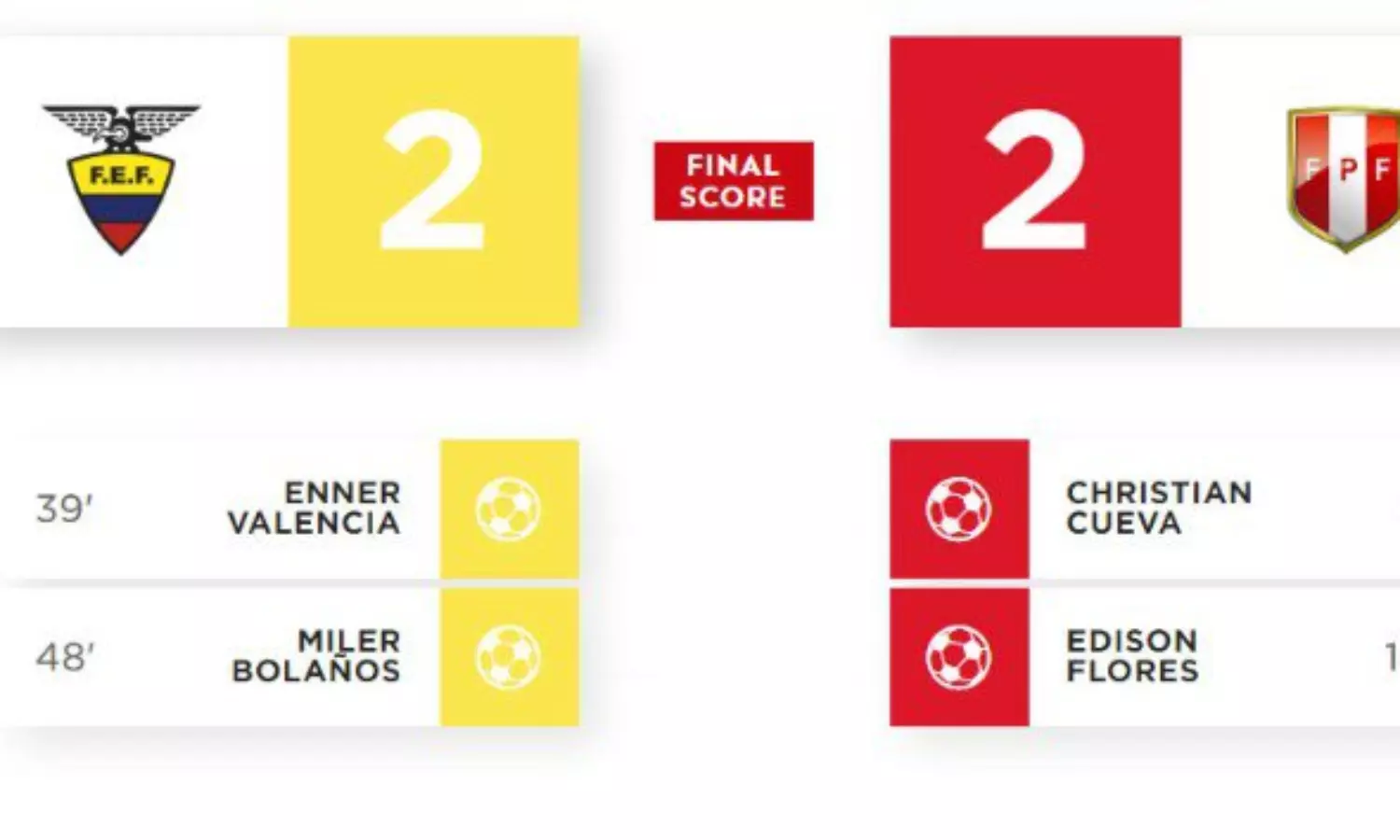 പതിനഞ്ചാം മിനിറ്റിനുള്ളില് രണ്ട് ഗോളുകള് നേടി മുന്നിലെത്തിയ പെറുവിനെ പിന്നീട് ഇക്വഡോര് സമനിലയില് പിടിക്കുകയായിരുന്നു.