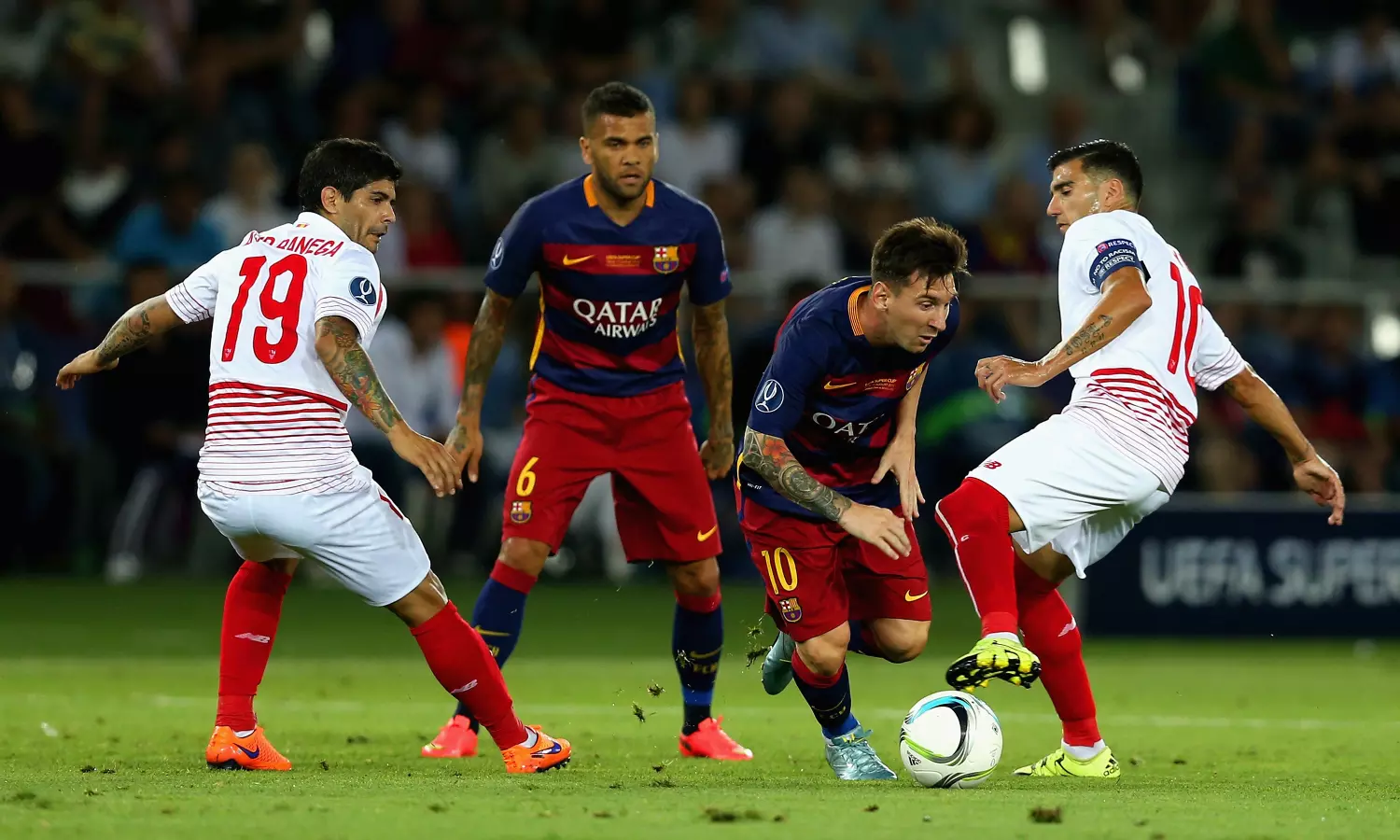 മറുവശത്ത് സെവിയ്യയുടെ ആത്മവിശ്വാസത്തിനും കുറവില്ല. തുടര്ച്ചയായ മൂന്നാം യൂറോപ്പ കപ്പ് നാട്ടിലെത്തിച്ചതിന്റെ കരുത്തുണ്ട് സെവിയ്യക്ക് കൂട്ടായി.സ്പാനിഷ് ലീഗില് ബാഴ്സലോണ പരാജയപ്പെട്ട മത്സരങ്ങളിലൊന്ന് സെവിയ്യക്കെതിരെയായിരുന്നുവെന്നതും ശ്രദ്ധേയമാണ്.