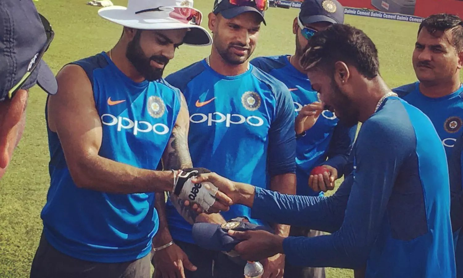 മത്സരത്തിന് മുമ്പ് നായകന് വിരാട് കൊഹ്ലി പാണ്ഡ്യക്ക് ഇന്ത്യന് തൊപ്പി ഔദ്യോഗികമായി സമ്മാനിച്ചു