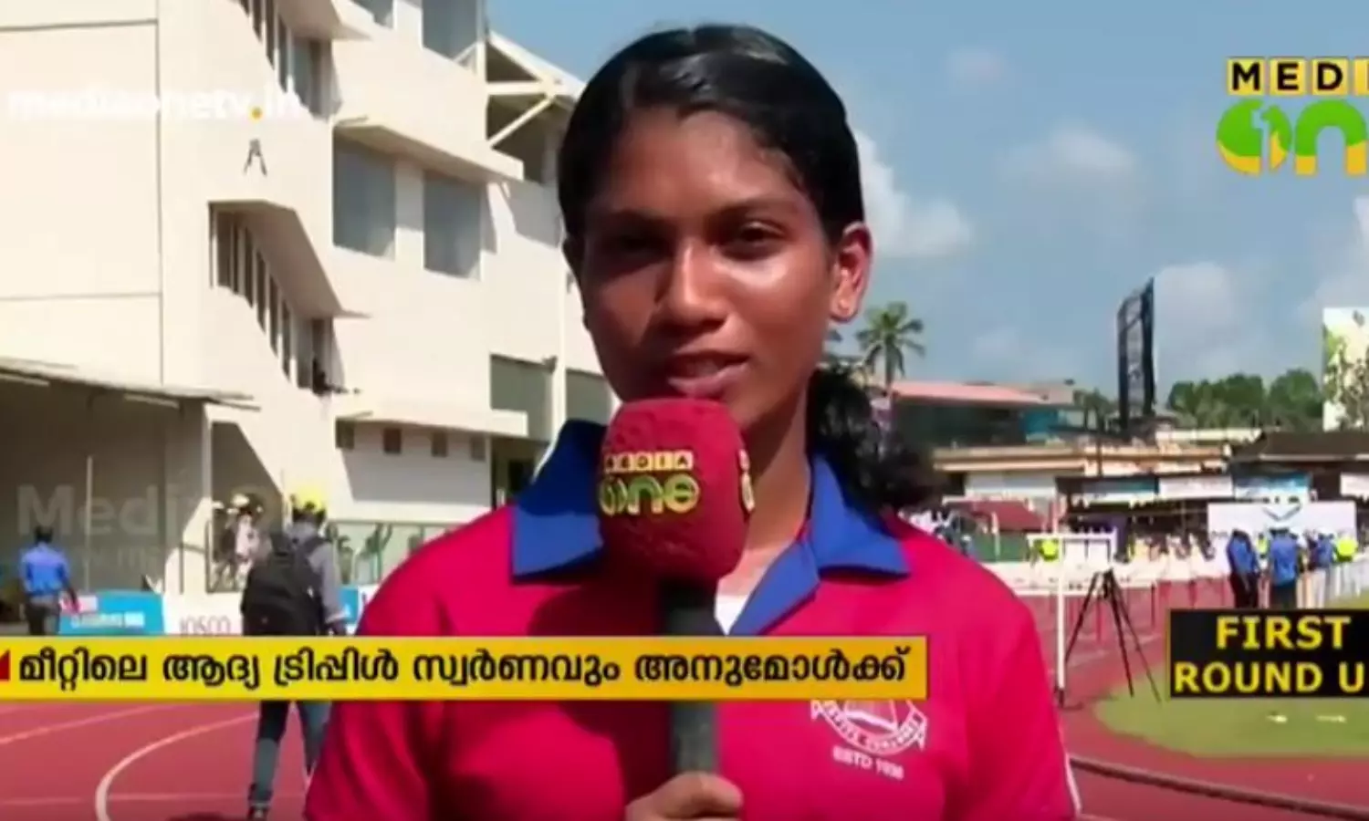 ആയിരത്തി അഞ്ഞൂറ് മീറ്ററിൽ സ്വർണമണിഞ്ഞ് കോതമംഗലം മാർ ബേസിൽ സ്കൂളിലെ അനുമോൾ തമ്പി മീറ്റിലെ ട്രിപ്പിൾ തികച്ചു. അവസാന സ്കൂൾ കായികോത്സവത്തിനിറങ്ങിയ അനുമോൾ മീറ്റിന്റെ താരമായാണ് ട്രാക്കിനോട് വിട പറയുന്നത്.