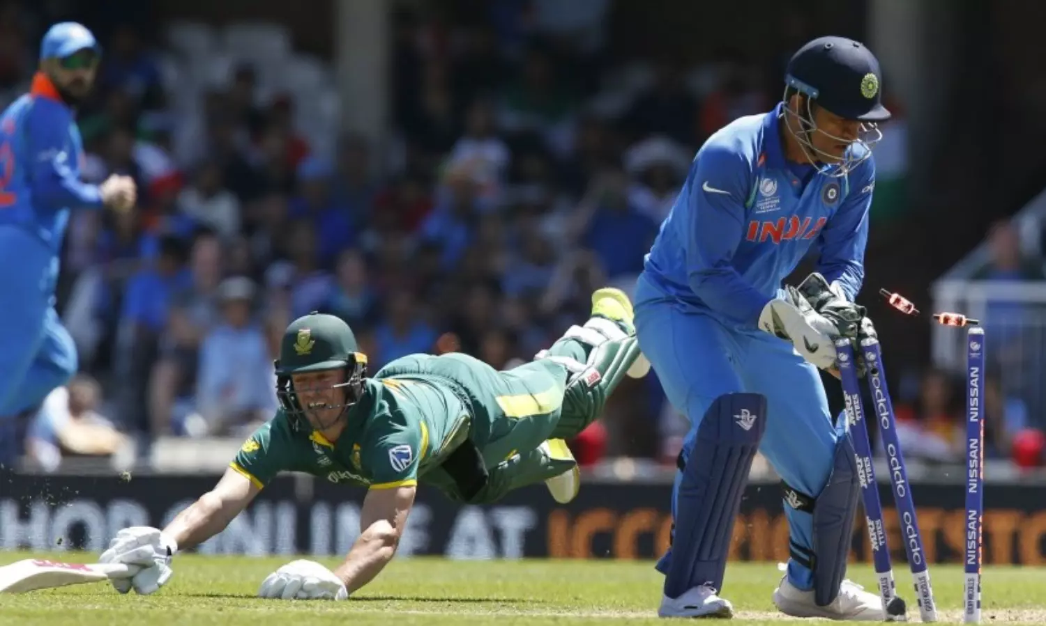 ഓട്ടത്തില് അഗ്രഗണ്യനായി അറിയപ്പെടുന്ന ഡിവില്ലിയേഴ്സ് ഡൈവ് ചെയ്തെങ്കിലും മിന്നല് വേഗത്തിലാണ് ധോണി പ്രവര്ത്തിച്ചത്. ഒരിക്കല് കൂടി പരാജിതനായി ദക്ഷിണാഫ്രിക്കന് നായകന് മടങ്ങി.