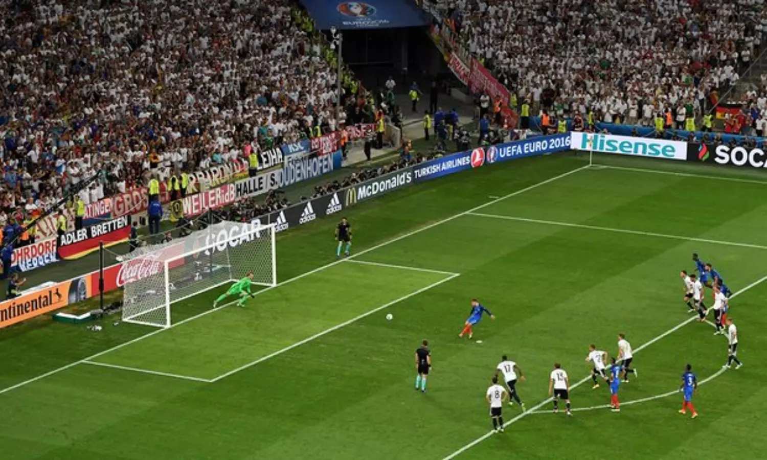 പന്ത് കൂടുതല് സമയം കൈവശം വെച്ച ജര്മനിയെ ഞെട്ടിച്ച് ഫ്രാന്സിന്റെ ഗോളെത്തി. ജര്മന് നായകന് ബാസ്റ്റിന് ഷ്വാന്സ്റ്റൈഗറുടെ കയ്യില് പന്ത് തട്ടിയപ്പോള് റഫറി പെനാല്റ്റി സ്പോട്ടിലേക്ക് വിരല് ചൂണ്ടി. കിക്കെടുത്ത ഗ്രീസ്മാന്റെ ബൂട്ടിന് ചരിത്രം മാറ്റിയെഴുതാനുള്ള ശക്തിയുണ്ടായിരുന്നു. രണ്ടാം പകുതിയിലും പന്ത് കയ്യില് വെച്ചതും ആക്രമണം നടത്തിയതും ജര്മനിയാണ്. ഫ്രഞ്ച് നായകന് ഹ്യൂഗോ ലോറിസിനെ മറികടക്കാനുള്ള പ്രാപ്തി പക്ഷേ അതിനുണ്ടായില്ല. ഇതിനിടയില് ജര്മ്മന് സെന്റര് ബാക്ക് ജെറോം ബോട്ടെങ് പരിക്കേറ്റ് പുറത്തേക്ക്. ബോട്ടെങില്ലാത്ത ജര്മന് പ്രതിരോധം ദുര്ബലമായി. ഇത് രണ്ടാം ഗോളിനുള്ള കാരണമായി. പൂര്ണമായും പോള് പോഗ്ബക്ക് അവകാശപ്പെട്ട ഗോള്. ആറ് ഗോളോടെ ഗ്രീസ്മാന് ടൂര്ണമെന്റിലെ സുവര്ണബൂട്ടിനുള്ള പോരാട്ടത്തില് ബഹുദൂരം മുന്നിലെത്തി. പിന്നെയും അവസരങ്ങള് ഏറെ കിട്ടി ലോകചാമ്പ്യന്മാര്ക്ക്. ഗോളടിക്കാന് മറന്ന ജര്മനിയുടെ മുന്നേറ്റനിരയെ കണ്ട് പരിശീലകന് ക്ഷുഭിതനായി. ഒടുവില് മത്സരത്തിന് മുമ്പ് ജെറാഡും സിസോക്കോയും പറഞ്ഞത് പോലെ ഫ്രാന്സ് കണക്കുകള്ക്കെല്ലൊം പകരം ചോദിച്ചു. പരിശീലകന് ദെഷാംപ്സ് പറഞ്ഞത് പോലെ ചരിത്രം മാറ്റിയെഴുതി. ഫ്രാന്സ് 58 വര്ഷങ്ങള്ക്ക് ശേഷം സ്വന്തം കാണികള്ക്ക് മുന്നില് ജര്മനിയെ തോല്പ്പിച്ചു. ഇനി കപ്പിനും ചുണ്ടിനുമിടയില് പോര്ച്ചുഗല് മാത്രം.