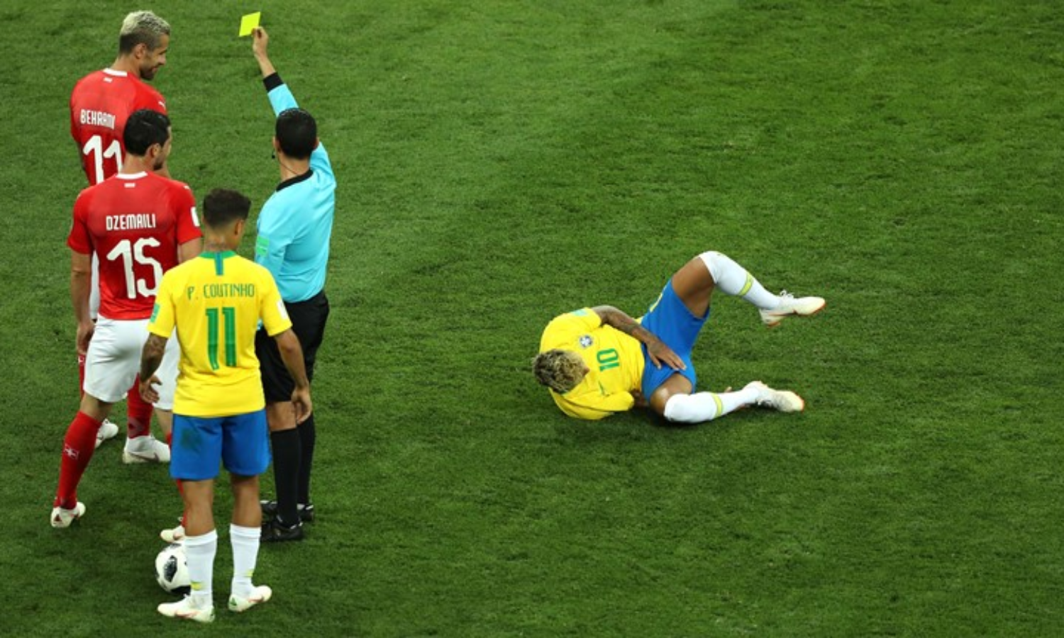 നാലാം മിനിറ്റ് മുതല് തൊണ്ണൂറാം മിനിറ്റ് വരെ നെയ്മര് ഫൌളിനിരയായി. സ്വിറ്റ്സര്ലന്ഡിന്റെ തന്ത്രം വിജയിക്കുകയും നെയ്മര്ക്ക് കാര്യമായ മുന്നേറ്റം നടത്താനാകാതെ വരികയും ചെയ്തു.എന്നാല് ഫൌളുകള് മനപ്പൂര്വമായിരുന്നില്ലെന്നാണ് സ്വിസ് കോച്ച് പെറ്റ്കോവിച്ചിന്റെ പ്രതികരണം. നെയ്മര്ക്ക് കളി മെനയാകാതെ വന്നതോടെയാണ് ബ്രസീല് സ്കോര് ഒരെണ്ണമായി ചുരുങ്ങിയത്.
