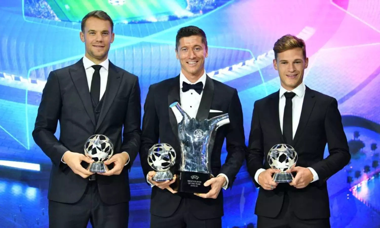നാല് പുരസ്കാരങ്ങളാണ് ബയേണ് സ്വന്തമാക്കിയത്. ബയേണിന്റെ മാനുലവല് ന്യൂയറാണ് മികച്ച ഗോള് കീപ്പര്. മാഞ്ചസ്റ്റര് സിറ്റിയുടെ കെവിന് ഡിബ്രൂയിന് മികച്ച മധ്യനിര താരത്തിനും ബയേണിന്റെ ജോഷോ കിമ്മിച്ച് മികച്ച പ്രതിരോധ താരത്തിനുള്ള പുരസ്കാരത്തിനും അര്ഹനായി. മികച്ച പരിശീലകനായി ബയേണ് പരിശീലകന് ഹാന്സി ഫ്ലിക്കിനെ തെരഞ്ഞെടുത്തു.