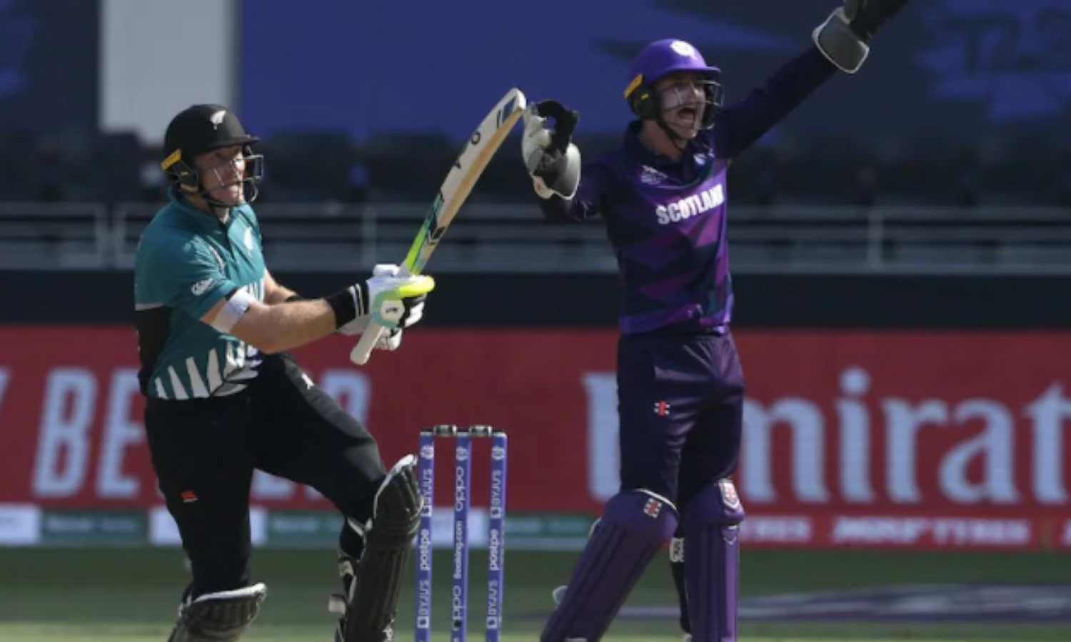 ''ഇന്ത്യ മുഴുവൻ നിനക്ക് പിന്തുണയുമായുണ്ടെന്നും നന്നായി പന്തെറിഞ്ഞോയെന്നും ടീമിലെ ബൗളറോട് സ്കോട്ലാൻഡ് വിക്കറ്റ്കീപ്പർ. സ്റ്റമ്പിലെ മൈക്കാണ് സ്കോട്ട്ലാൻഡ് വിക്കറ്റ് കീപ്പർ മാത്യൂ ക്രോസ് സഹതാരമായ ബൗളർ ക്രിസ് ഗ്രീവ്സിനോട് പറഞ്ഞ രസകരമായ കമൻറ് ഒപ്പിയെടുത്തത്. ടി 20 ലോകകപ്പിൽ ന്യൂസിലാൻഡിനെതിരെ നടന്ന മത്സരത്തിനിടെയാണ് സംഭവം. ബുധനാഴ്ച ദുബായ് അന്താരാഷ്ട്ര സ്റ്റേഡിയത്തിൽ നടന്ന മത്സരത്തിൽ ന്യൂസിലാൻഡ് കഷ്ടിച്ച് രക്ഷപ്പെടുകയായിരുന്നു. ന്യുസിലാൻഡ് പരാജയപ്പെട്ടാൽ ഇന്ത്യക്ക് സെമിയിലെത്താൻ സാധ്യത വർധിക്കുമായിരുന്നു. ഈ സാഹചര്യത്തിലാണ് ക്രോസിന്റെ കമൻറ്.