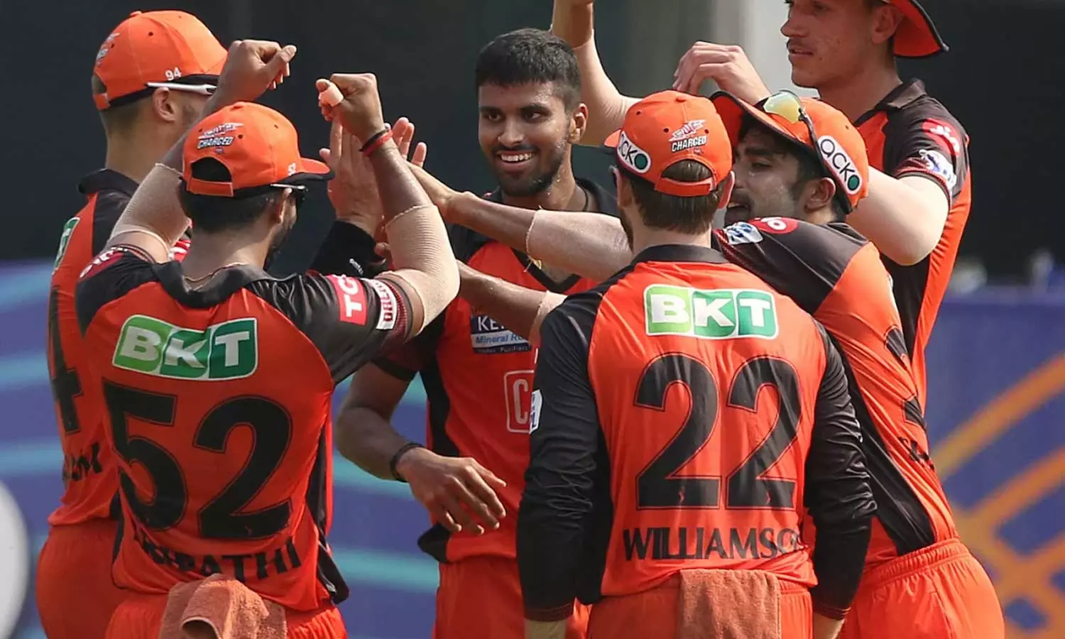 ഹൈദരാബാദിനായി വാഷിങ്ടൺ സുന്ദറും നടരാജനും രണ്ട് വിക്കറ്റ് നേടിയപ്പോൾ ഭുവനേശ്വർ കുമാറും മാർക്കോ ജാൻസനും ഓരോ വിക്കറ്റ് നേടി