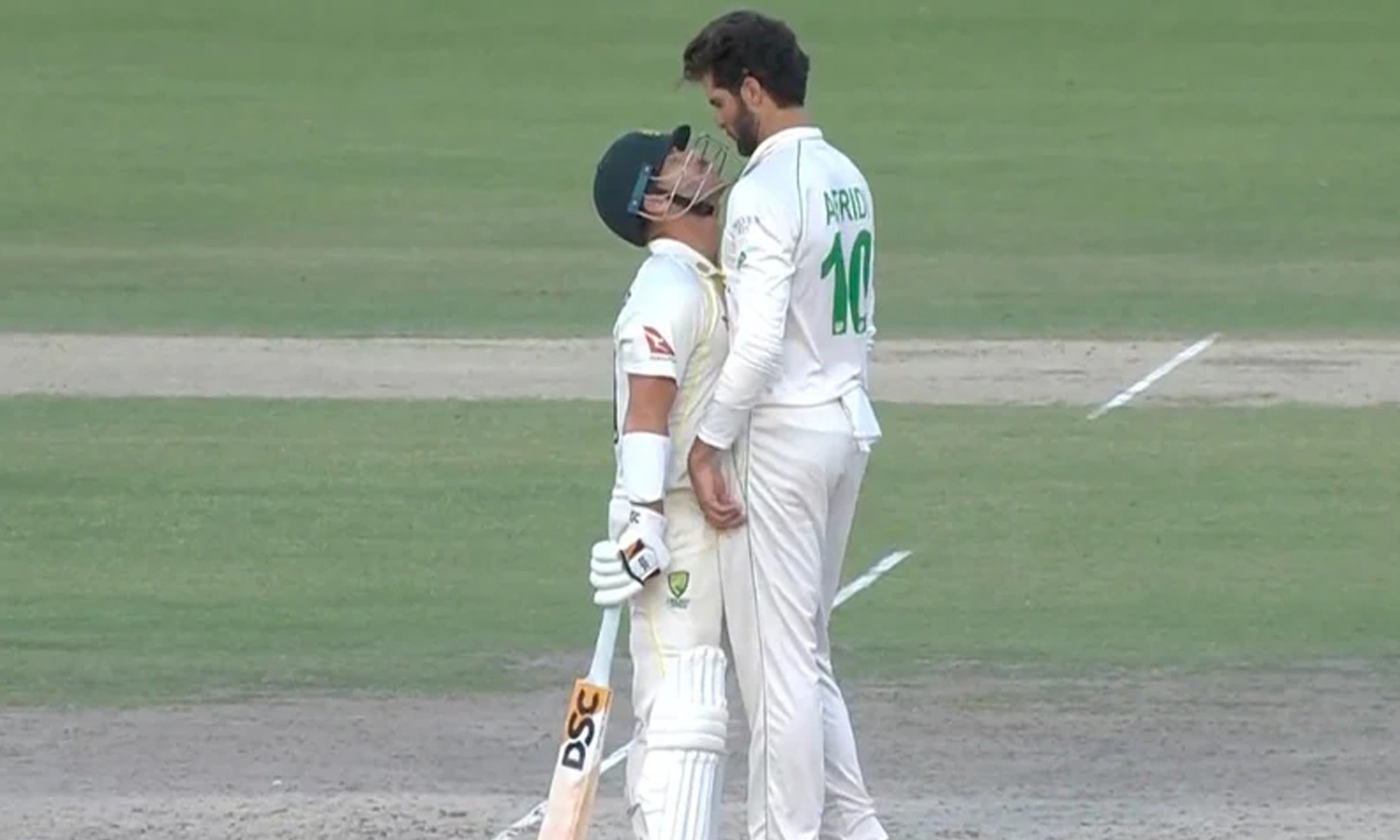 പാകിസ്താൻ-ആസ്ട്രേലിയ മൂന്നാം ടെസ്റ്റിനിടയിലെ രസകരമായ സംഭവമാണ് ഇപ്പോൾ ക്രിക്കറ്റ് ലോകത്ത് വൈറലാകുന്നത്. ഉയരംകൊണ്ട് വാർണറേക്കാൾ മുന്നിലാണ് അഫ്രീദി. ഇരുവരും അടുത്തടുത്ത് വന്ന് മുഖത്തോട് മുഖം നോക്കിയാൽ എങ്ങനെയിരിക്കും. മൂന്നാം ദിനത്തിലെ അവസാന ഓവറിലാണ് ഇങ്ങനെയൊരു കാഴ്ചക്ക് ക്രിക്കറ്റ് ലോകം സാക്ഷിയായത്. അഫ്രീദിയുടെ മികച്ചെരു പന്ത് വാർണർ പ്രതിരോധിച്ചു.
