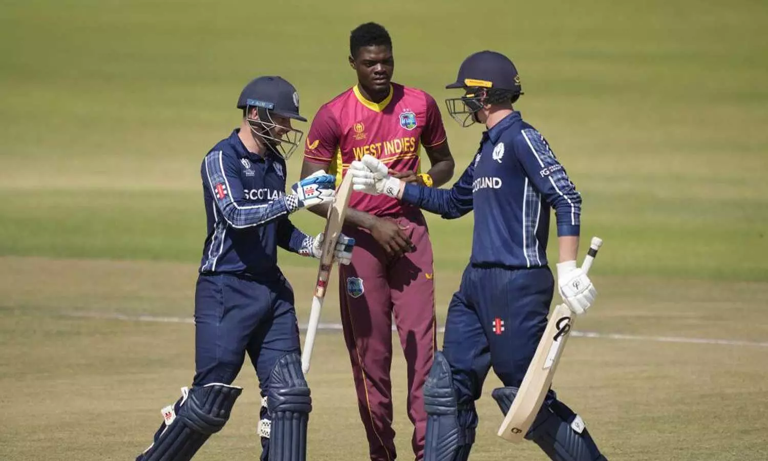 1975ൽ ലോകകപ്പ് ആരംഭിച്ചത് മുതൽ കഴിഞ്ഞ ഏകദിന ലോകകപ്പ് വരെ വിൻഡീസ് ഉണ്ടായിരുന്നു. ടോസ് നേടിയ സ്‌കോട്ട്‌ലാൻഡ് വിൻഡീസിനെ ബാറ്റിങിനയക്കുകയായിരുന്നു. 43.5 ഓവറിൽ വിൻഡീസിന് 181 റൺസ് മാത്രമെ നേടാനായുള്ളൂ. അതിനിടെ എല്ലാ വിക്കറ്റുകളും നഷ്ടമായി. 45 റൺസെടുത്ത ജേസൺ ഹോൾഡറാണ് വിൻഡീസിന്റെ ടോപ് സ്‌കോറർ. അഞ്ച് പേർക്ക് രണ്ടക്കം പോലും കാണാനായില്ല. റൊാമരിയോ ഷെപ്പാർഡ്(36) നിക്കോളാസ് പുരാൻ(21) എന്നിവർ പൊരുതി നോക്കിയെങ്കിലും അച്ചടക്കമുള്ള സ്‌കോട്ട്‌ലാൻഡ് ബൗളർമാർക്ക് മുന്നിൽ വിൻഡീസ് വീഴുകയായിരുന്നു.