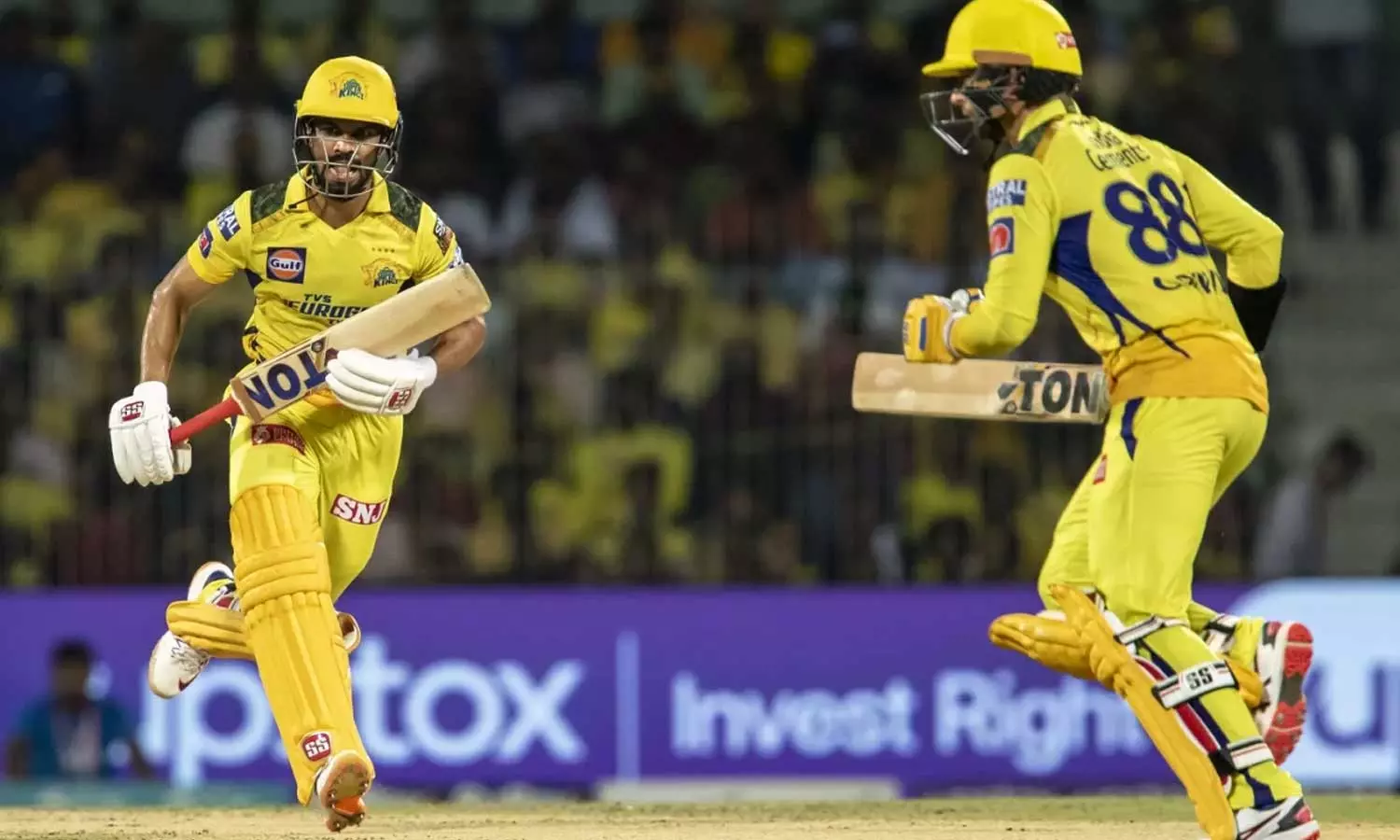ഋതുരാജ് ഗെയിക്വാദും ഡെവന് കോണ്വേയും മത്സരത്തിനിടെ