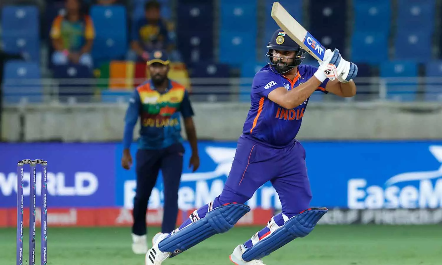 ആറ് റൺസെടുത്ത രാഹുലിനെ തീക്ഷ്ണ വിക്കറ്റിന് മുന്നിൽ കുരുക്കുകയായിരുന്നു. തൊട്ടുപിന്നാലെ വിരാട് കോഹ്ലിയെ കൂടി ലങ്ക വീഴ്ത്തിയതോടെ ഇന്ത്യ 13ന് രണ്ട് എന്ന നിലയിലെത്തി. അക്കൗണ്ട് തുറക്കും മുമ്പെ മധുശങ്ക, കോഹ്ലിയെ ക്ലീൻ ബൗൾഡാക്കുകയായിരുന്നു. ശേഷം വന്ന സൂര്യകുമാർ യാദവുമൊത്താണ് രോഹിത് ഇന്ത്യയെ കരകയറ്റിയത്. ഇരുവരും ചേർന്ന് നേടിയത് 97 റൺസ്. 41 പന്തുകളിൽ നിന്ന് അഞ്ച് ഫോറും നാല് സിക്സറും സഹിതം 72 റൺസാണ് രോഹിത് നേടിയത്. ആദ്യ പത്ത് ഓവറിൽ ഇന്ത്യയുടെ സ്കോർ പതുക്കെയാണ് നീങ്ങിയത്.