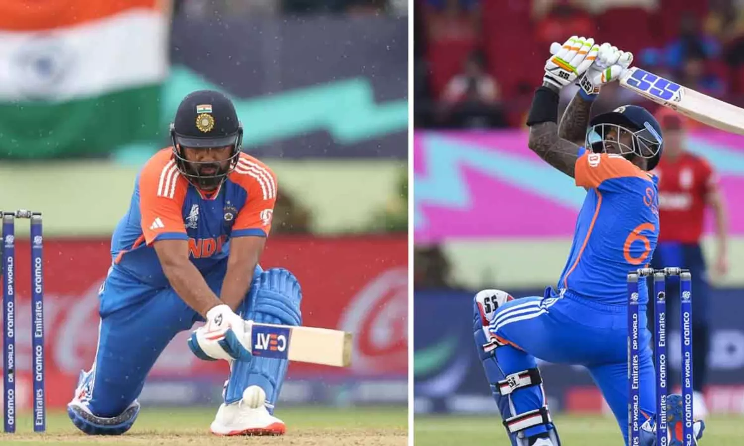 എന്നാൽ മൂന്നാം വിക്കറ്റിൽ ഒത്തു ചേർന്ന രോഹിത്-സൂര്യകുമാർ കൂട്ടുകെട്ട് പ്രതീക്ഷക്കൊത്തുയർന്നു. ഇംഗ്ലണ്ട് ബൗളർമാരെ കൃത്യമായി നേരിട്ട ഇരുവരും സ്കോറിംഗ് വേഗമുയർത്തി. സ്കോർ 113ൽ നിൽക്കെ രോഹിതും തൊട്ടടുത്ത ഓവറിൽ സൂര്യയും പുറത്തായതോടെ ഡെത്ത് ഓവറുകളിൽ റണ്ണൊഴുക്ക് കുറഞ്ഞു. ശിവം ദുബെ(0) പൂജ്യത്തിന് മടങ്ങി. എന്നാൽ 13 പന്തിൽ 23 റൺസുമായി ഹാർദിക് പാണ്ഡ്യയും ഒൻപത് പന്തിൽ 17 റൺസുമായി രവീന്ദ്ര ജഡേജയും ആറു പന്തിൽ 10 റൺസുമായി അക്സർ പട്ടേലും അവസാന ഓവറുകളിൽ ആഞ്ഞടിച്ചു. ഇതോടെ മുൻ ചാമ്പ്യൻമാർക്ക് ഭേദപ്പെട്ട സ്കോറിലേക്കെത്താനായി. ഇംഗ്ലണ്ടിനായി ക്രിസ് ജോർദാൻ മൂന്ന് വിക്കറ്റ് വീഴ്ത്തി. കഴിഞ്ഞ ടി20 ലോകകപ്പ് സെമിയിൽ ഇരുടീമുകളും നേർക്കുനേർ വന്ന മത്സരത്തിൽ ഇംഗ്ലണ്ടിനായിരുന്നു ജയം. ഫൈനലിൽ പാകിസ്താനെയും തോൽപിച്ച് ത്രീലയൺസ് ലോകകപ്പ് കിരീടത്തിൽല മുത്തമിട്ടു.