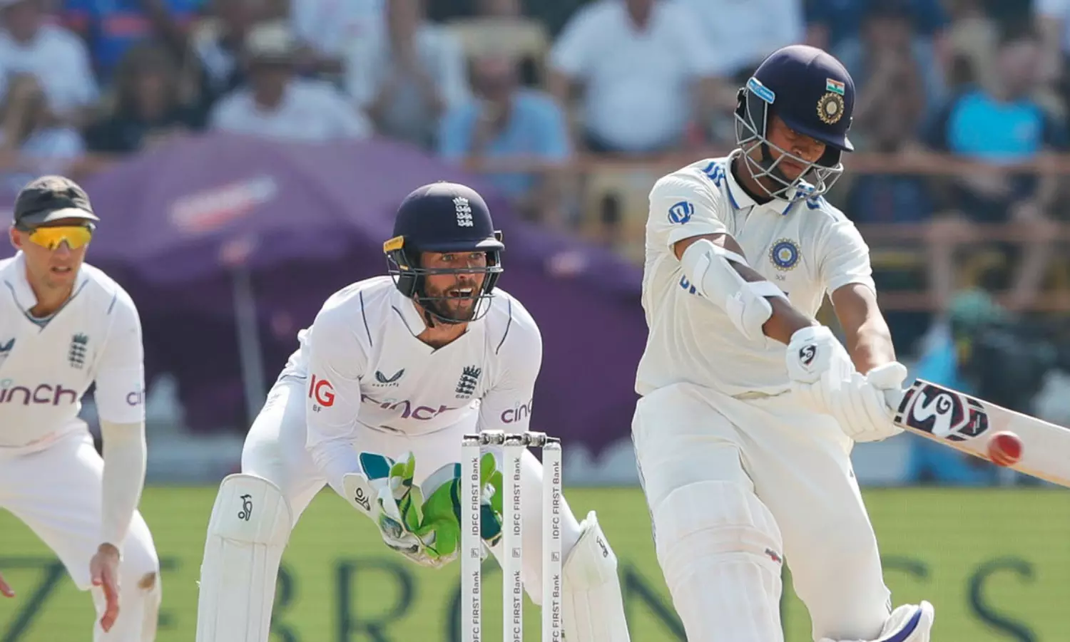 126 റൺസ് ഒന്നാം ഇന്നിങ്സ് ലീഡുമായി ബാറ്റിങ് തുടങ്ങിയ ഇന്ത്യക്ക് ക്യാപ്റ്റൻ രോഹിത് ശർമ്മയെയാണ് ആദ്യം നഷ്ടമായത്. 19 റൺസിൽ നിൽക്കെ ജോ റൂട്ടാണ് വിക്കറ്റിന് മുന്നിൽ കുടുക്കിയത്. തുടർന്ന് ഒത്തുചേർന്ന ജയ്സ്വാൾ-ശുഭ്മാൻഗിൽ കൂട്ടുകെട്ട് ഇന്ത്യൻ ഇന്നിങ്സ് മുന്നോട്ട് കൊണ്ടുപോയി. ഏകദിന ശൈലിയിൽ ബാറ്റുവീശിയ ജയ്സ്വാൾ 133 പന്തിൽ ഒൻപത് ബൗണ്ടറിയും അഞ്ച് സിക്സറും സഹിതമാണ് മൂന്നക്കം കണ്ടത്. പേശിവിലിവിനെ തുടർന്ന് 104ൽ നിൽക്കെ താരം റിട്ടയേർഡ് ഹർട്ടായി. തുടർന്ന് ക്രീസിലെത്തിയ രജത് പടിദാർ പൂജ്യത്തിന് പുറത്തായി. ടോം ഹാർട്ട്ലിക്കായിരുന്നു വിക്കറ്റ്.
