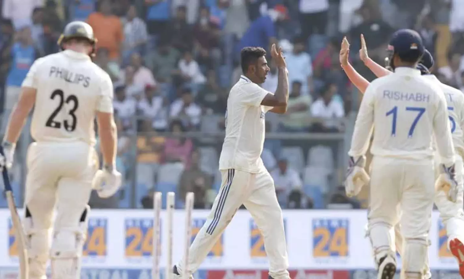 കറക്കി വീഴ്ത്തി അശ്വിനും ജഡേജയും; ന്യൂസിലാൻഡിന് ഒൻപത് വിക്കറ്റ് നഷ്ടം, 143 റൺസ് ലീഡ്