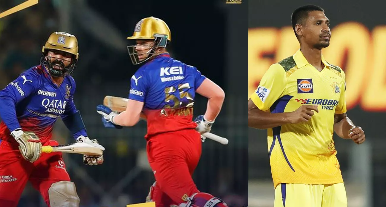 ഓപ്പണിങിൽ വിരാട് കോഹ്ലിയും ക്യാപ്റ്റൻ ഫാഫ് ഡുപ്ലെസിസും ചേർന്ന് സ്വപ്നതുല്യമായ തുടക്കമാണ് നൽകിയത്. ദീപക് ചഹറിനെ തുടരെ ബൗണ്ടറി പറത്തി പവർപ്ലെയിൽ ഡുപ്ലെയിസിന് ആഞ്ഞടിച്ചപ്പോൾ ആർസിബി സ്കോർബോർഡിൽ റൺസൊഴുകി. എന്നാൽ അഞ്ചാം ഓവറിൽ മുസ്തഫിസുർ റഹ്മാനെ ബൗളിങിൽ ഏൽപ്പിച്ച സിഎസ്കെ ക്യാപ്റ്റൻ ഋതുരാജ് ഗെയിക്വാദിന്റെ തീരുമാനം ആതിഥേയരെ മത്സരത്തിലേക്ക് മടക്കികൊണ്ടുവരുന്നതായി. 23 പന്തിൽ 35 റൺസിൽ നിൽക്കെ മുസ്തഫിസുറിനെ വലിയ ഷോട്ടിന് കളിച്ച ഡൂപ്ലെസിസിന് അടിതെറ്റി. ബൗണ്ടറിലൈനിനരികെ രചിൻ രവീന്ദ്രയുടെ കൈയിൽ വിശ്രമിച്ചു. തുടർന്ന് ക്രീസിലെത്തിയ രജത് പടിദാറിനെ ബംഗ്ലാ ബൗളർ പൂജ്യത്തിന് മടക്കി. തൊട്ടടുത്ത ഓവറിൽ ഗ്ലെൻമാക്സ് വെലിനെ ദീപക് ചഹർ വിക്കറ്റ്കീപ്പർ ധോണിയുടെ കൈയിലെത്തിച്ചതോടെ സന്ദർശകർ അപകടം മണത്തു.