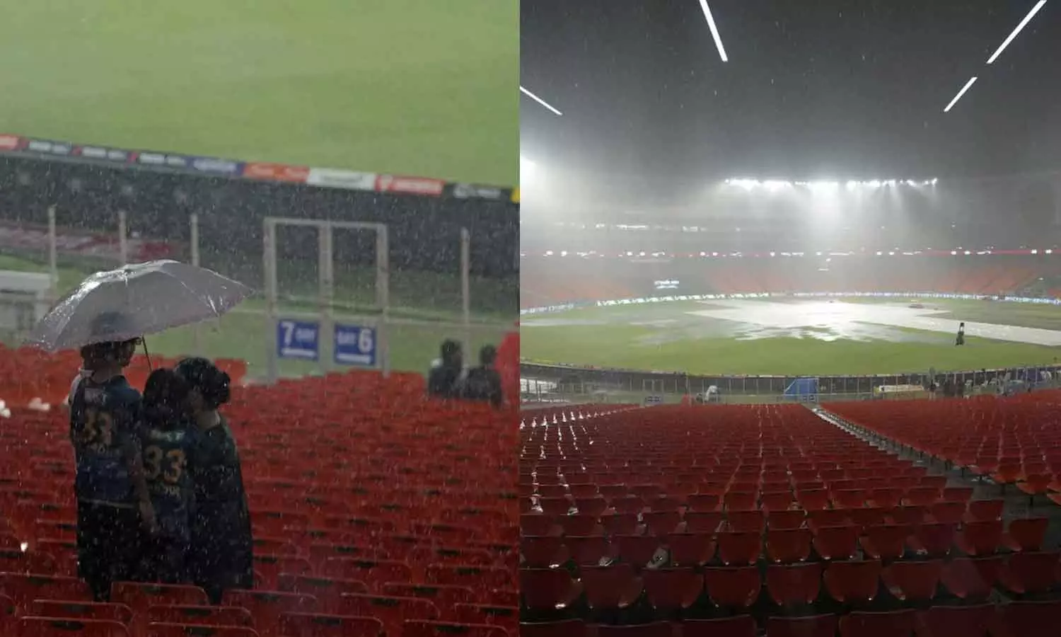 മഴയില് കുതിര്ന്ന അഹമ്മദാബാദിലെ നരേന്ദ്രമോദി സ്റ്റേഡിയം