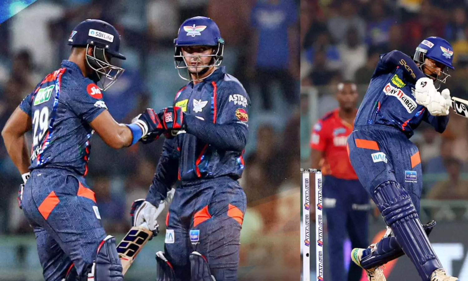 പരിക്ക് കാരണം കെ എൽ രാഹുൽ ഇന്ന് ഇംപാക്റ്റ് സബ്സ്റ്റിറ്റിയൂട്ടായാണ് കളിച്ചത്. പകരം നിക്കോളാസ് പുരാനാണ് ലക്നൗവിനെ നയിച്ചത്. ദേവ്ദത്ത് പടിക്കൽ ഒരിക്കൽകൂടി(9) വേഗത്തിൽ മടങ്ങി. മാർക്കസ് സ്റ്റോയിനിസ്(19), ആയുഷ് ബധോണി(8) എന്നിവരും വേഗത്തിൽ മടങ്ങി. എന്നാൽ അവസാന ഓവറിൽ ക്രുണാൽ പാണ്ഡ്യ തകർത്തടിച്ചപ്പോൾ മികച്ച സ്കോറിലേക്ക് ലക്നൗ ഉയർന്നു.