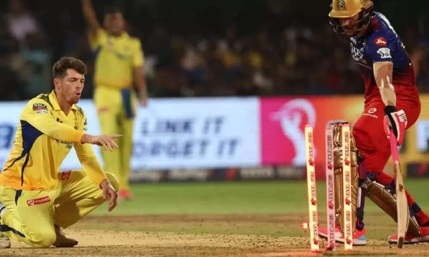 ബെംഗലൂരു: മിച്ചൽ സാന്റ്നർ എറിഞ്ഞ 13ാം ഓവറിലെ അവസാന പന്ത്. രജത് പടിദാറിന്റെ അതിവേഗ സ്ട്രേറ്റ് ഡ്രൈവ് ബൗളറുടെ കൈയിൽതട്ടി നോൺ സ്ട്രൈക്കിങ് എൻഡിലെ സ്റ്റമ്പിൽ തട്ടിനിന്നു. തുടർന്ന് ടിവി അംപയർ വിശദമായി പരിശോധിച്ച ശേഷം ഔട്ട് വിളിക്കുകയായിരുന്നു. മില്ലിമീറ്റർ വ്യത്യാസത്തിലുള്ള തീരുമാനം എന്നാണ് കമന്ററി ബോക്സിൽ നിന്ന് ഈ സമയം പറഞ്ഞത്. ഡുപ്ലെസിസിന്റെ ബാറ്റ് ക്രീസിലുണ്ടെന്നും അല്ലെന്നുമുള്ള വാദം ഈ സമയമുണ്ടായി.