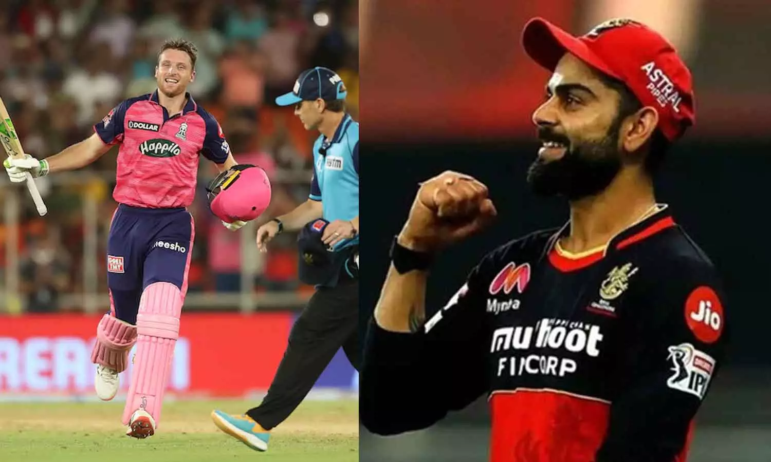 അന്ന് 973 റൺസാണ് കോഹ്ലിയുടെ ബാറ്റിൽ നിന്ന് പിറന്നത്. ആർ.സി.ബി ഫൈനലിൽ എത്തിയെങ്കിലും സൺറൈസേഴ്സ് ഹൈദരാബാദിനോട് തോറ്റു. എന്നാൽ ഈ സീസൺ കോഹ്ലിക്ക് അത്ര ശുഭകരമല്ല. 50 ലേറെ സ്കോർ നേടിയത് രണ്ട് തവണ മാത്രം. ബട്ട്ലർക്ക് ഇപ്പോൾ 824 റൺസായി. ഈ സീസണിലെ ഓറഞ്ച് ക്യാപ്പിന് ഉടമയും ബട്ട്ലറാണ്. മുംബൈ ഇന്ത്യൻസ്, ഡൽഹി കാപിറ്റൽസ്, കൊൽക്കത്ത നൈറ്റ് റൈഡേഴ്സ് എന്നിവർക്കെതിരെയാണ് ഈ സീസണിൽ ബട്ട്ലർ സെഞ്ച്വറി നേടിയത്.