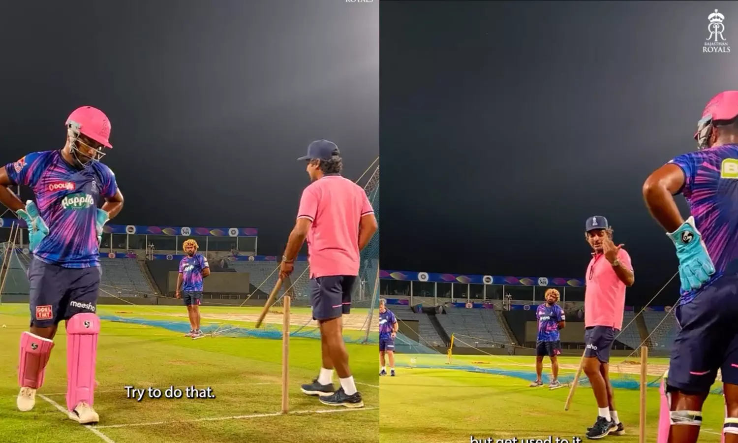 സംഗക്കാരയാണ് ബാറ്റ് ചെയ്യുന്നത്. നന്നായി ചെയ്ത സഞ്ജുവിനെ സംഗക്കാര അഭിനന്ദിക്കുന്നതും വീഡിയോയിലുണ്ട്.