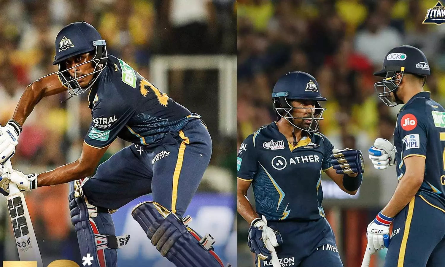 രണ്ട് വിക്കറ്റ് പോയിനിൽക്കുന്ന സമയത്ത് ക്യാപ്റ്റൻ പാണ്ഡ്യ തന്നെ ക്രീസിലെത്തി. സുദർശൻ മറുതലക്കൽ തകർപ്പനടികൾക്ക് തുടക്കമിട്ടു. നിരന്തരം ബൗണ്ടറികൾ പായിച്ച് സുദർശൻ ചെന്നൈ ആരാധകർക്ക് നിരാശ സമ്മാനിച്ചു. അവസാന ഓവറില് തകർത്തടിച്ച് നില്ക്കെ സെഞ്ചുറിക്ക് നാല് റണ്സ് അകലെ സുദർശന് വീണു. പതിരാനയുടെ ബോളില് എല്ബിഡബ്ല്യു. ടീമിന്റെ സ്കോർ 212 ല് നില്ക്കെ 96 റണ്സ് സംഭാവന ചെയ്താണ് സുദർശന് കളം വിട്ടത്.